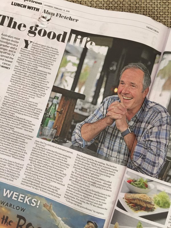 Neighbours' Dr Karl – aka Alan Fletcher – on music, acting and bowel cancer http://www.smh.com.au/entertainment/tv- ... z3zzKNCR4G Quote: You almost expect Alan Fletcher, marathon TV medico, to have the obligatory stethoscope around his neck when he arrives for lunch. Even his two kids call him "Doctor Dad" and Fletcher himself has to remind himself every now and then – "I'm an actor, not a doctor". He's been fully employed in a daily job for over two decades as Dr Karl Kennedy on Neighbours – and, unlike many thespian unions, happily married. "Coming up for our 26th anniversary this year," he says. "But it is pretty easy with someone who's so adorable. And it IS my second marriage – you've got to practise."
