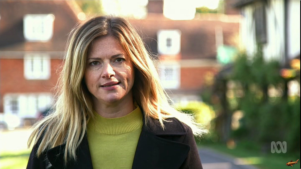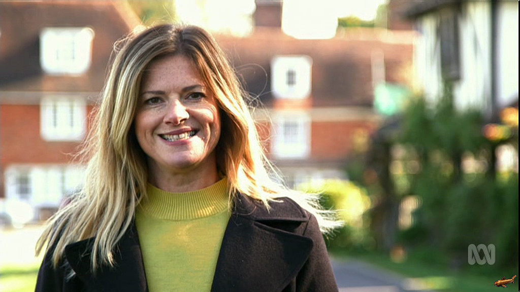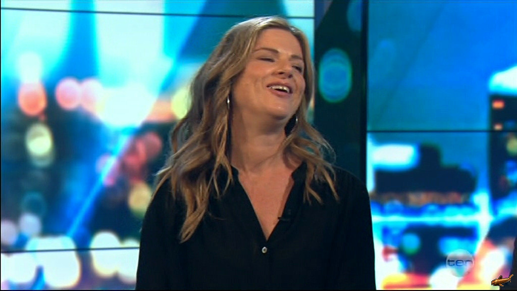 Julia showing some nice thighs in sheer leggings, and giving a quick 'Basic Instinct' for the camera on 'Home Delivery' this evening.