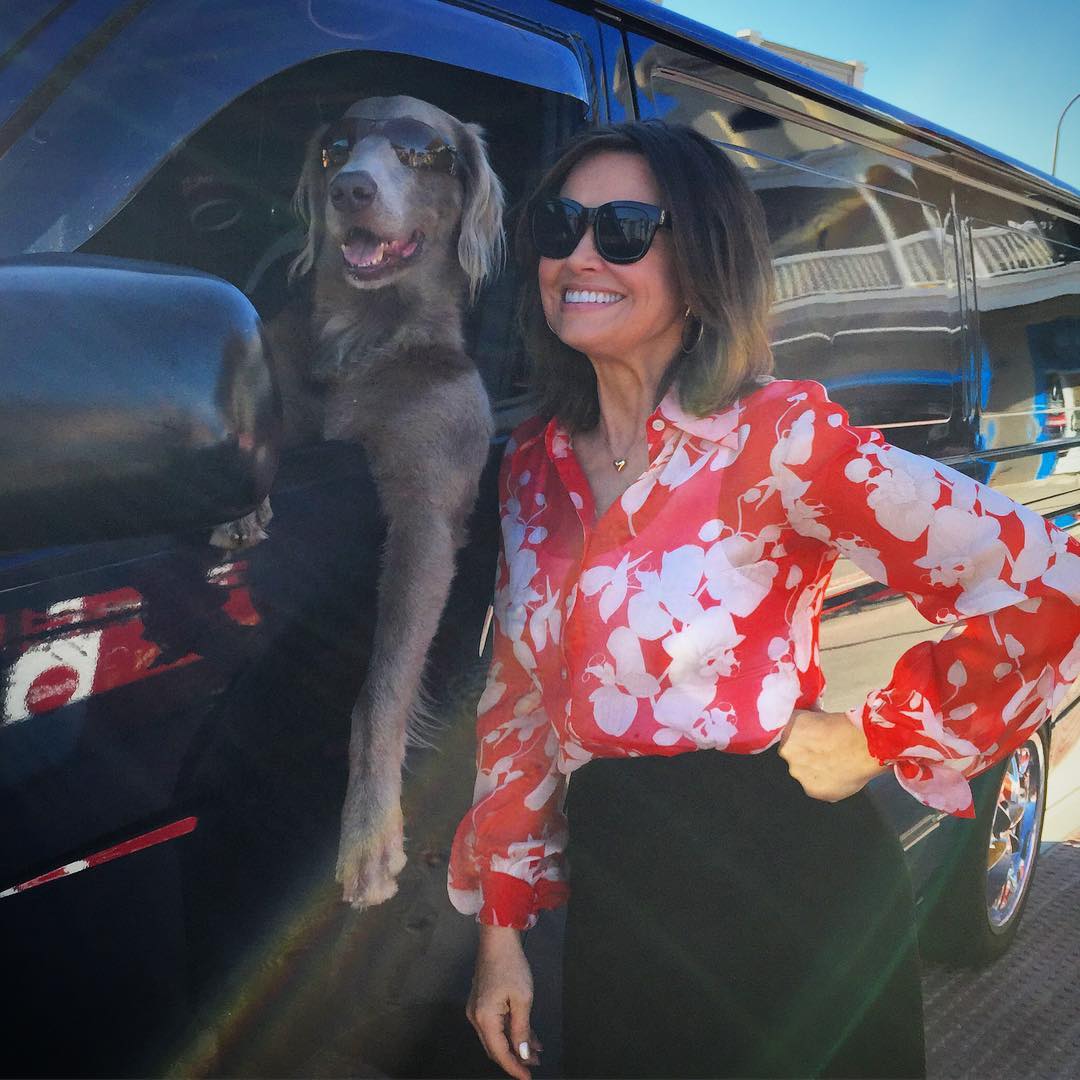 Lisa chewing down on a big dog