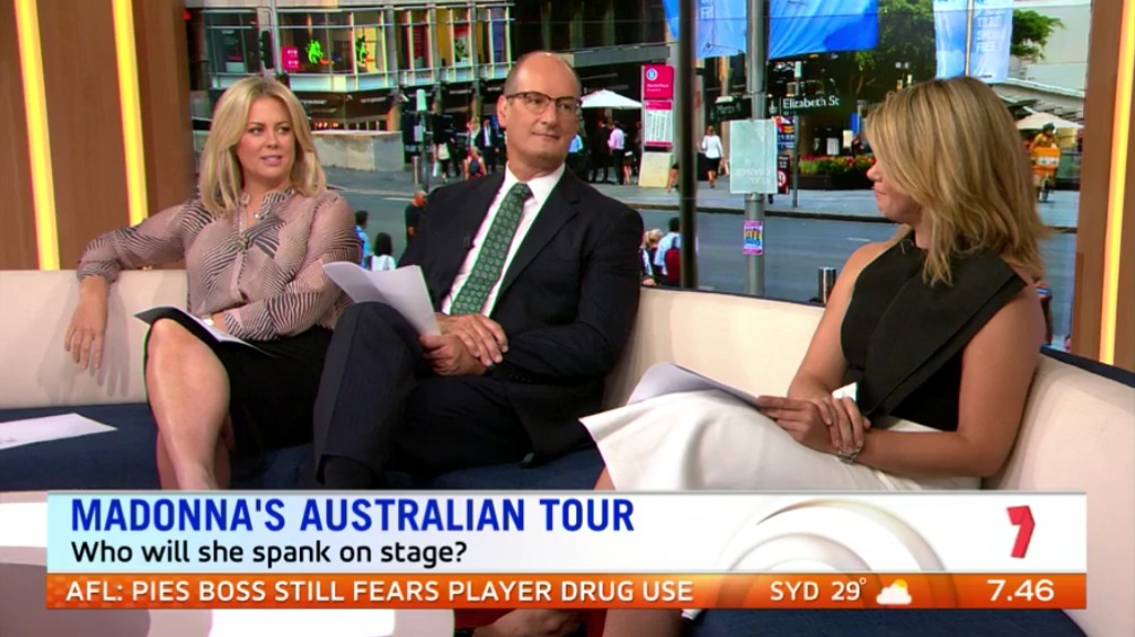 Fizzybomb wrote: What's happened to Sunrise? they changed the set (wish they kept the desk) changed the format to make it look more like channel nines Today show and to top it all of Sam is dressing just like Lisa Wilkinson hav'nt seen her beautiful thighs in months. We caught a little flash of them yesterday when she was talking to that pommie royal reporter (any pics?). The revamp is more like retro, back to the 70's. Graphics are crap as is the set. They better get to the tip and retrieve the former set and graphics machine.