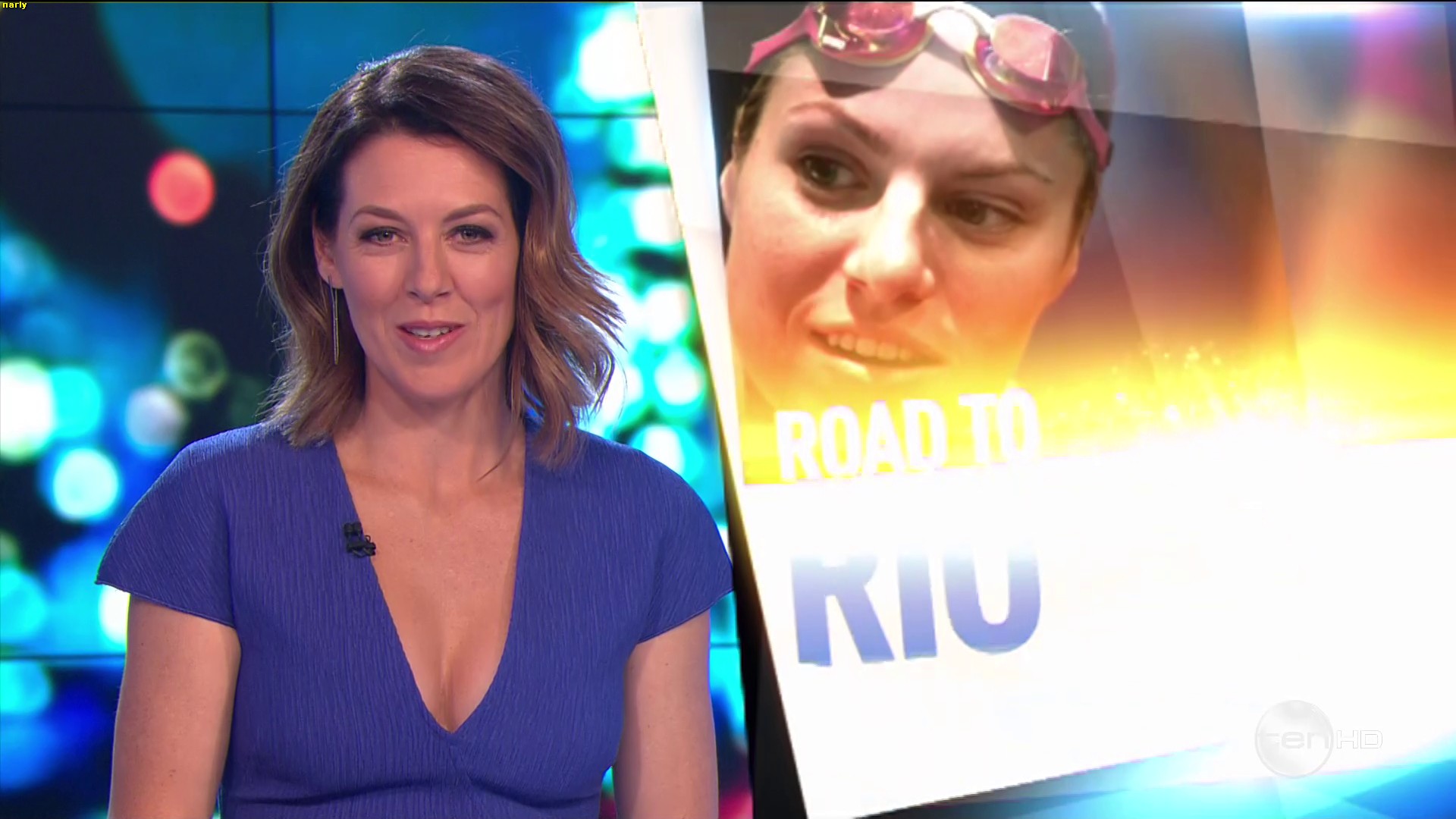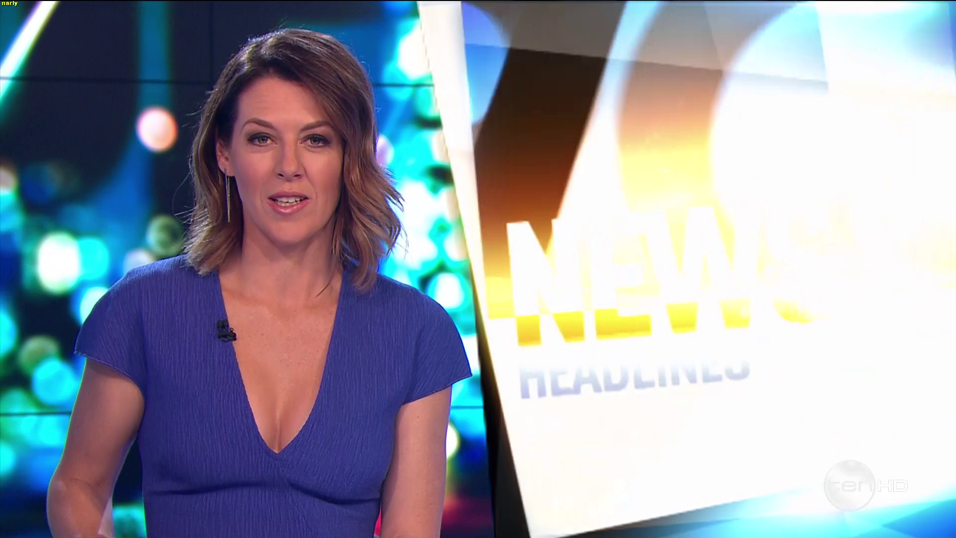 Got some superb cleavage showing in blue dress on the project tonight