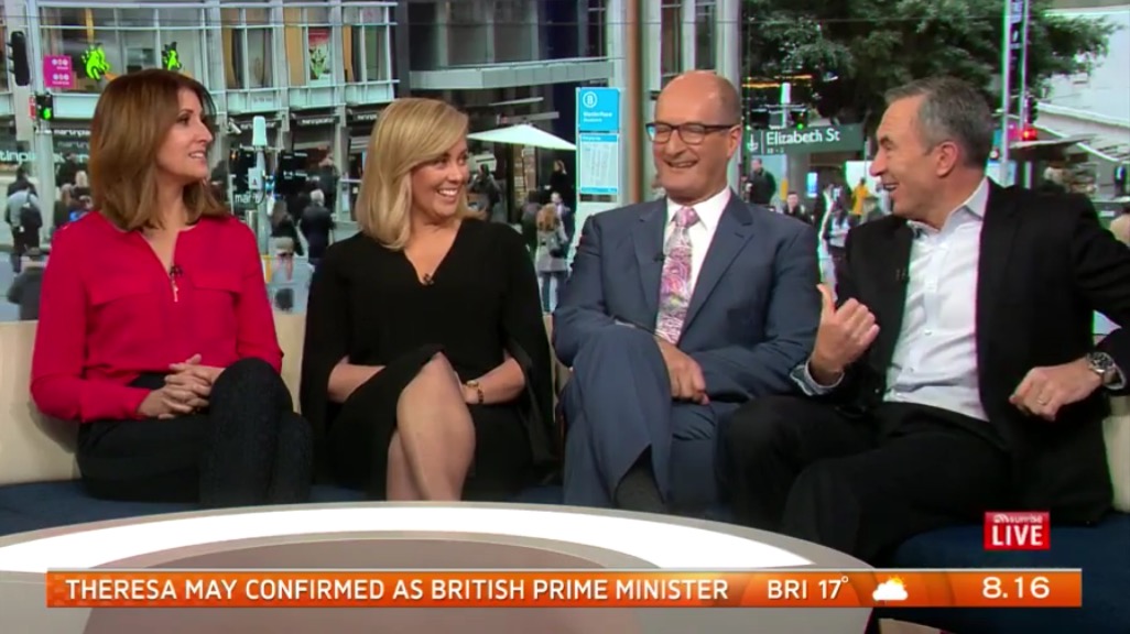 did any of our intrepid cappers catch janq pitman ob sunrise this morning, looked gorgeous as a blonde, black stockings and dress just covering her bum, wow