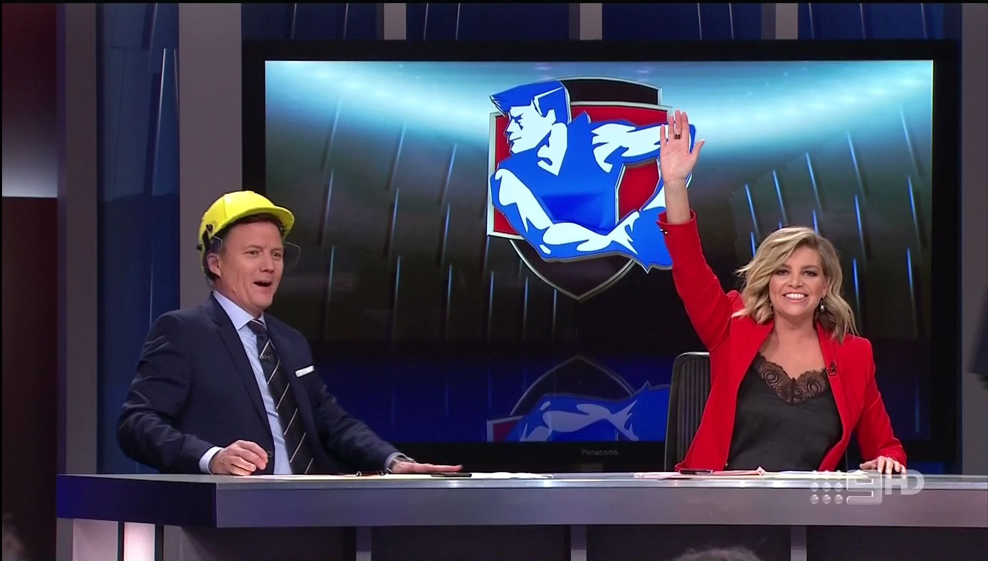 Looking hot on the footy show tonight too in red jacket.m