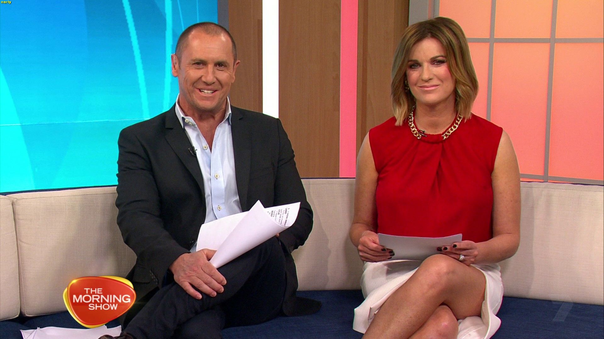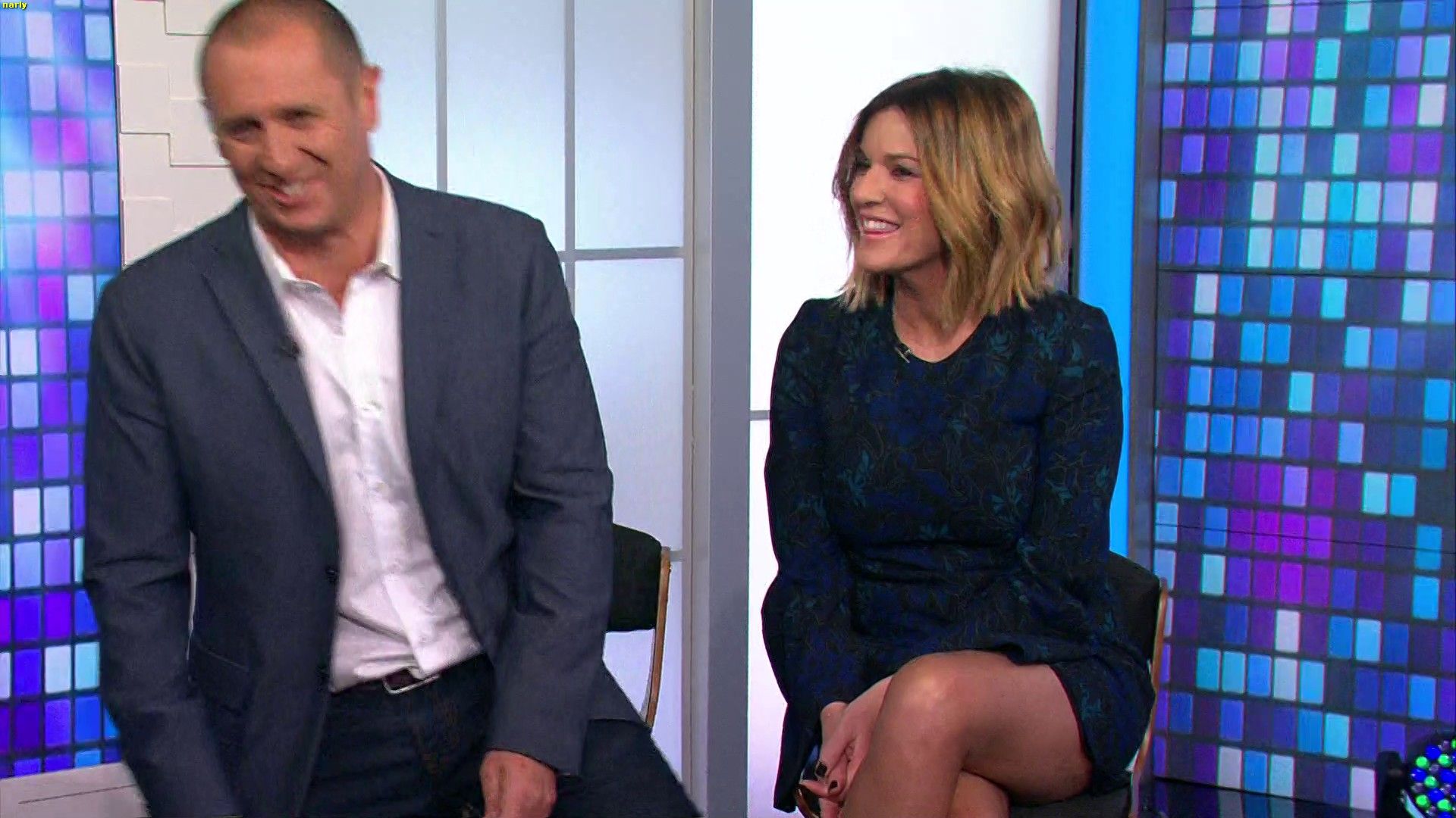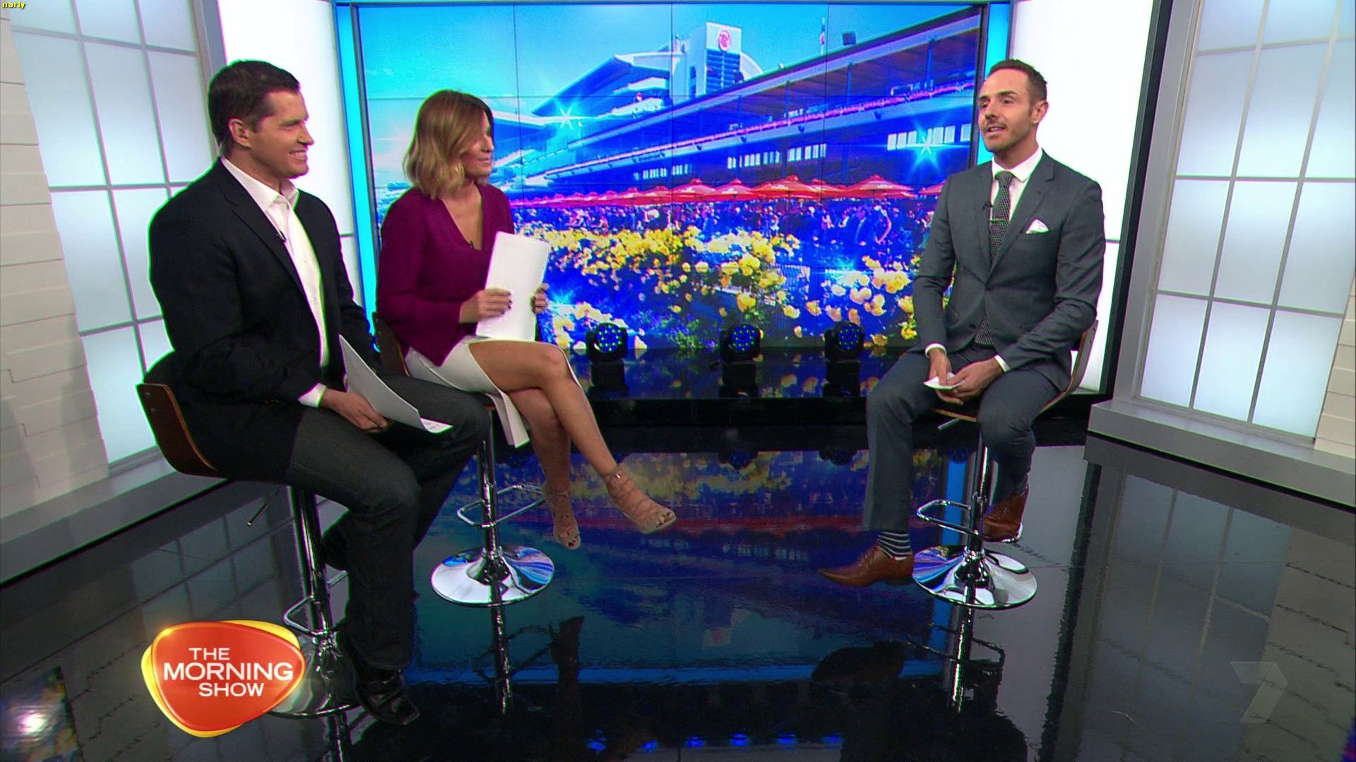 Those high slit skirts have had a good run lately. She is wearing them again today, they look quite conservative when she's standing but super sexy when she sits and crosses the leg that's on the side of the slit. Especially while sitting on the high chair she looked fantastic.