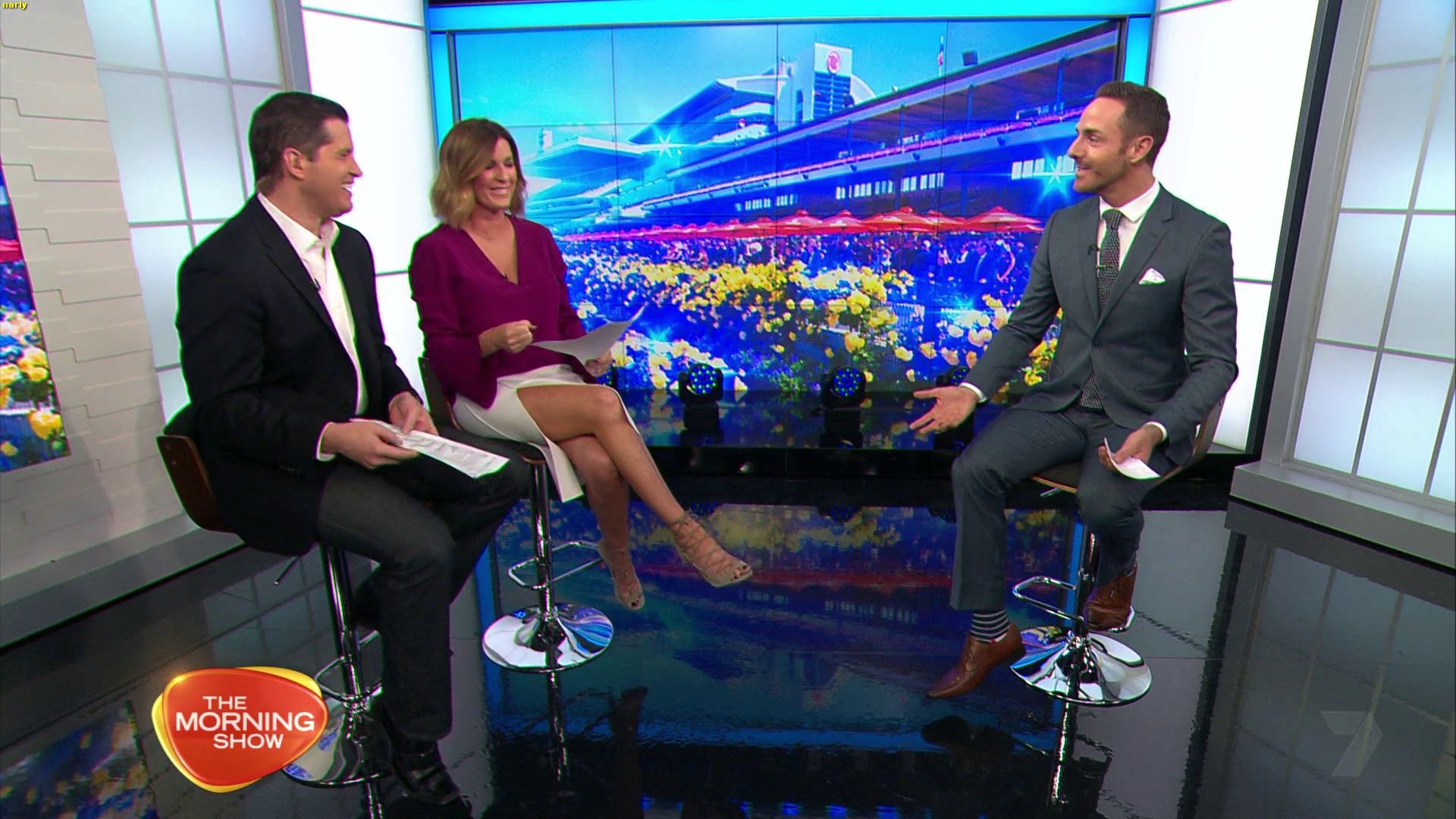 Those high slit skirts have had a good run lately. She is wearing them again today, they look quite conservative when she's standing but super sexy when she sits and crosses the leg that's on the side of the slit. Especially while sitting on the high chair she looked fantastic.