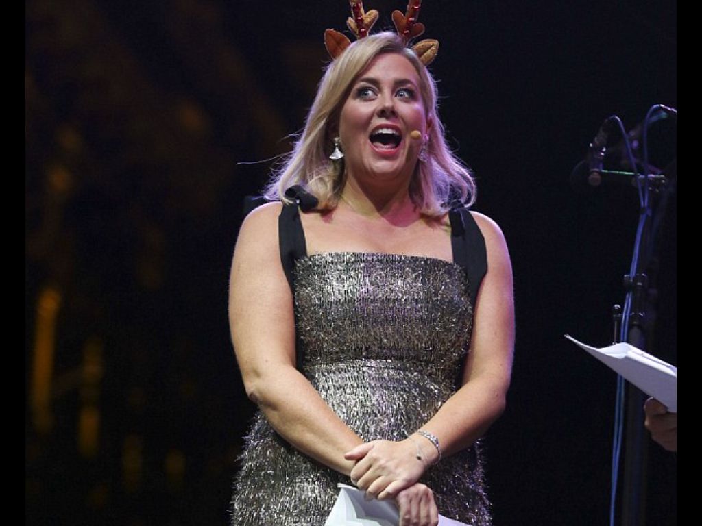sam looked extra gorgeous this morning in red. she looks 3 months pregnant, so sexy big tummy showing