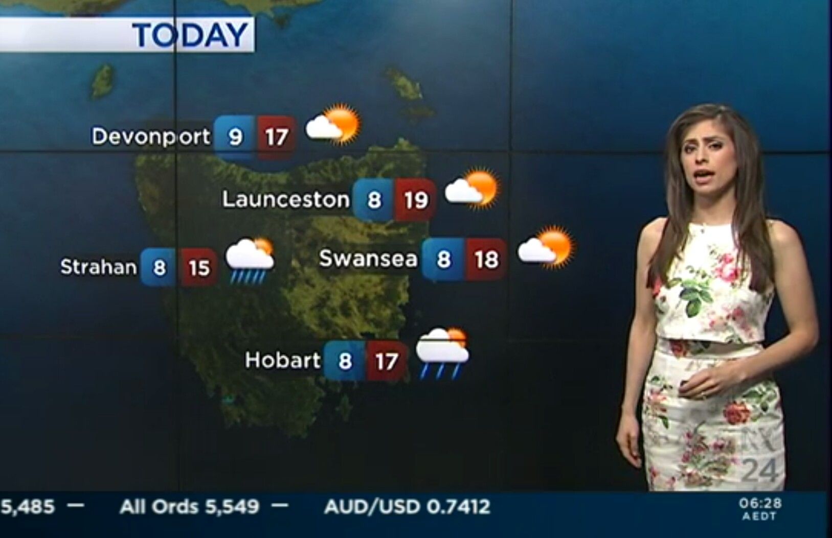 Georgie Tunny doing weather today, in slacks