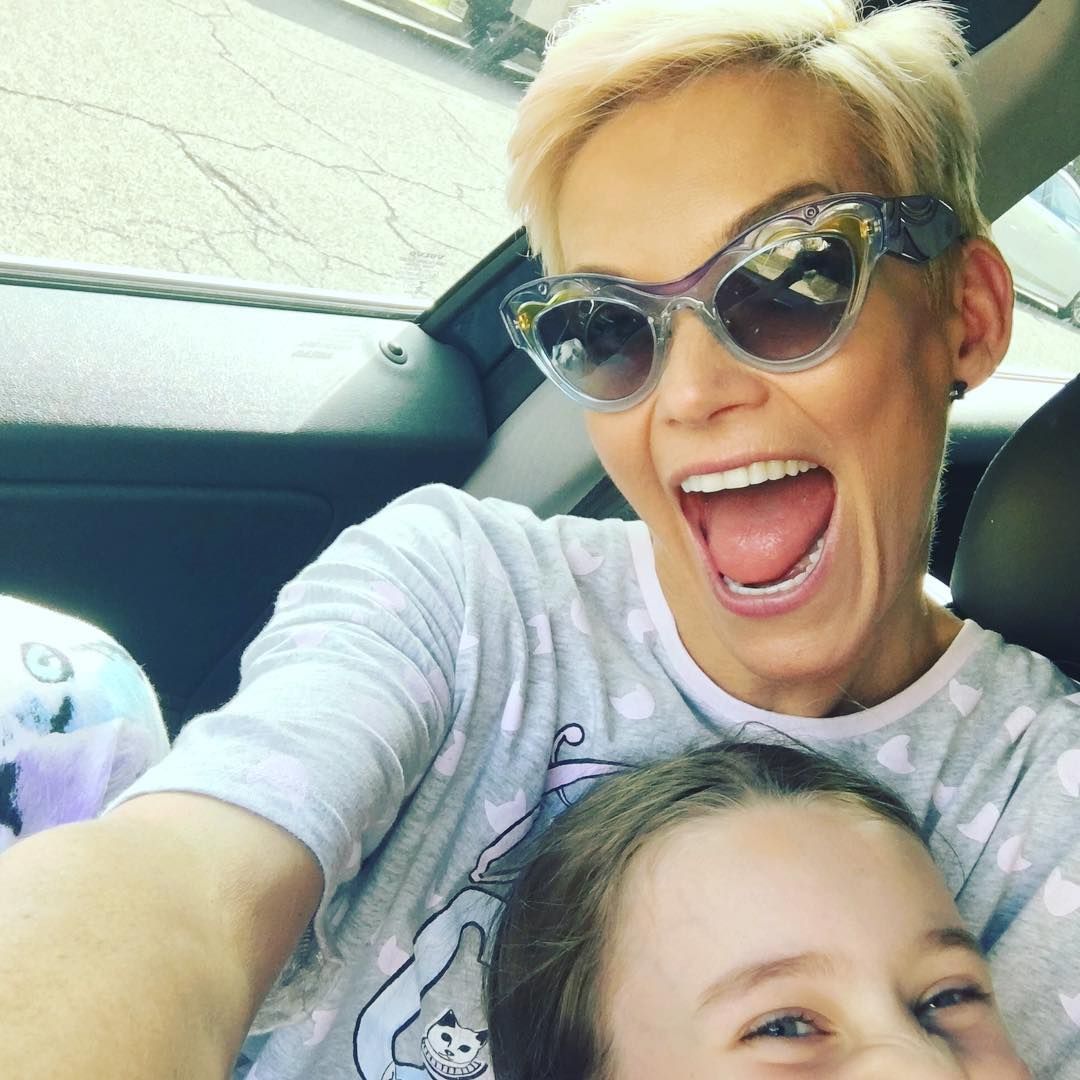 Quote: Thumbs up for first school pick for the year! Obeyed my eldest daughters instructions, 'Mummy no pj's, no bare feet and make sure you're wearing underpants!' #craphousewife #schoolisbaaaaaack! #woohooooo