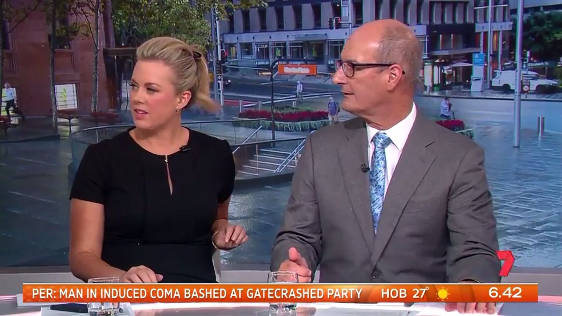 She looks sensational this morning in short black dress with hair up by the way.