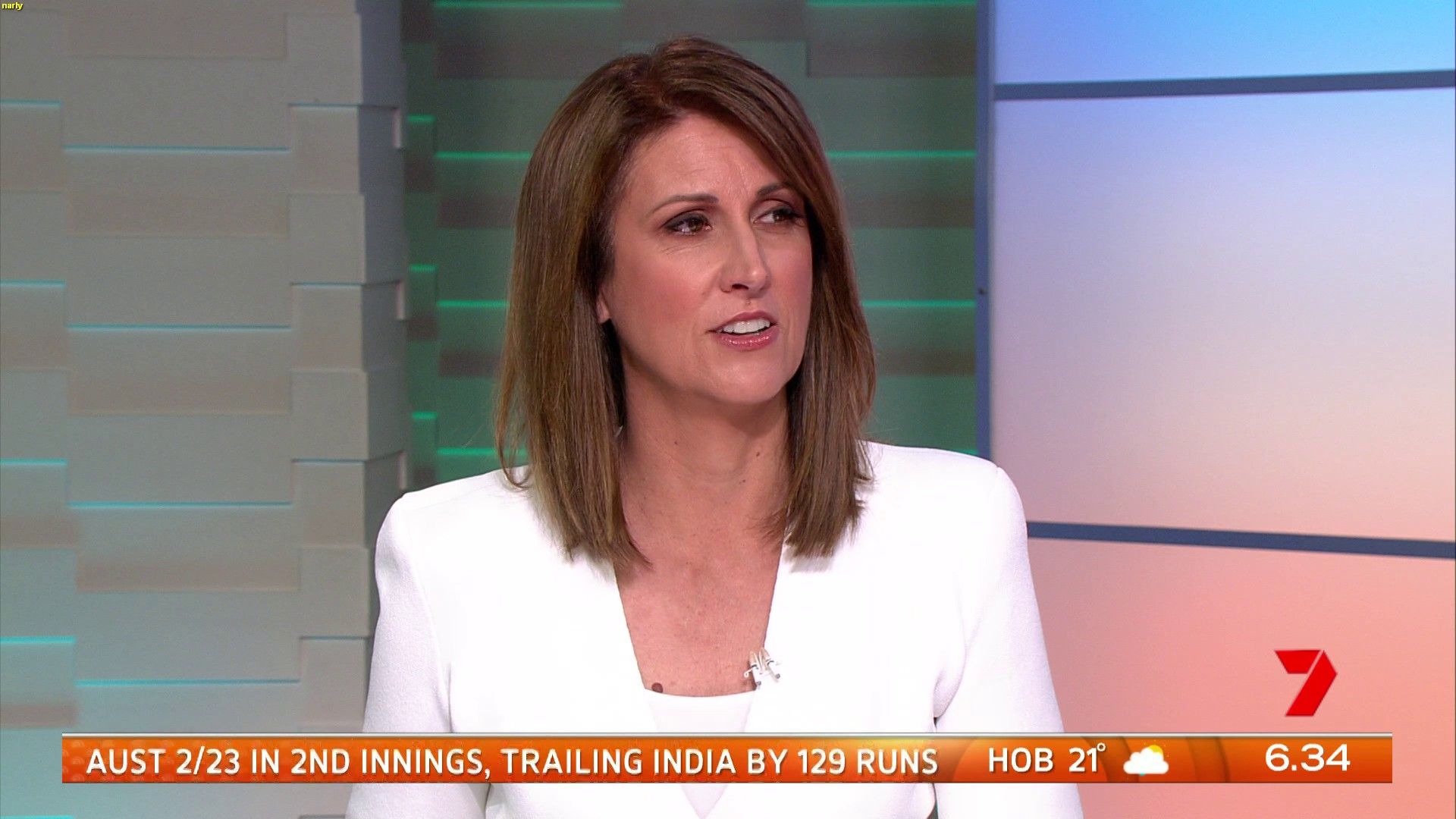 Hotmel wrote: Any caps of her standing up in those tight white pants Narly??  Didn't see her standing that day