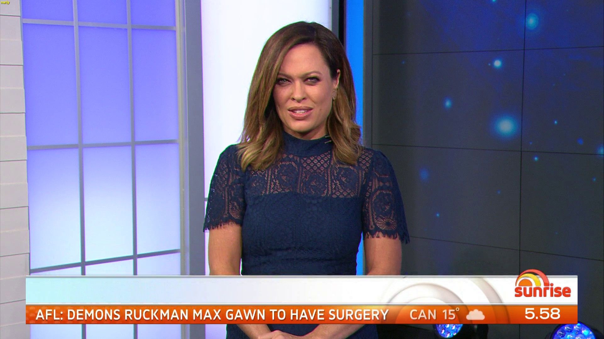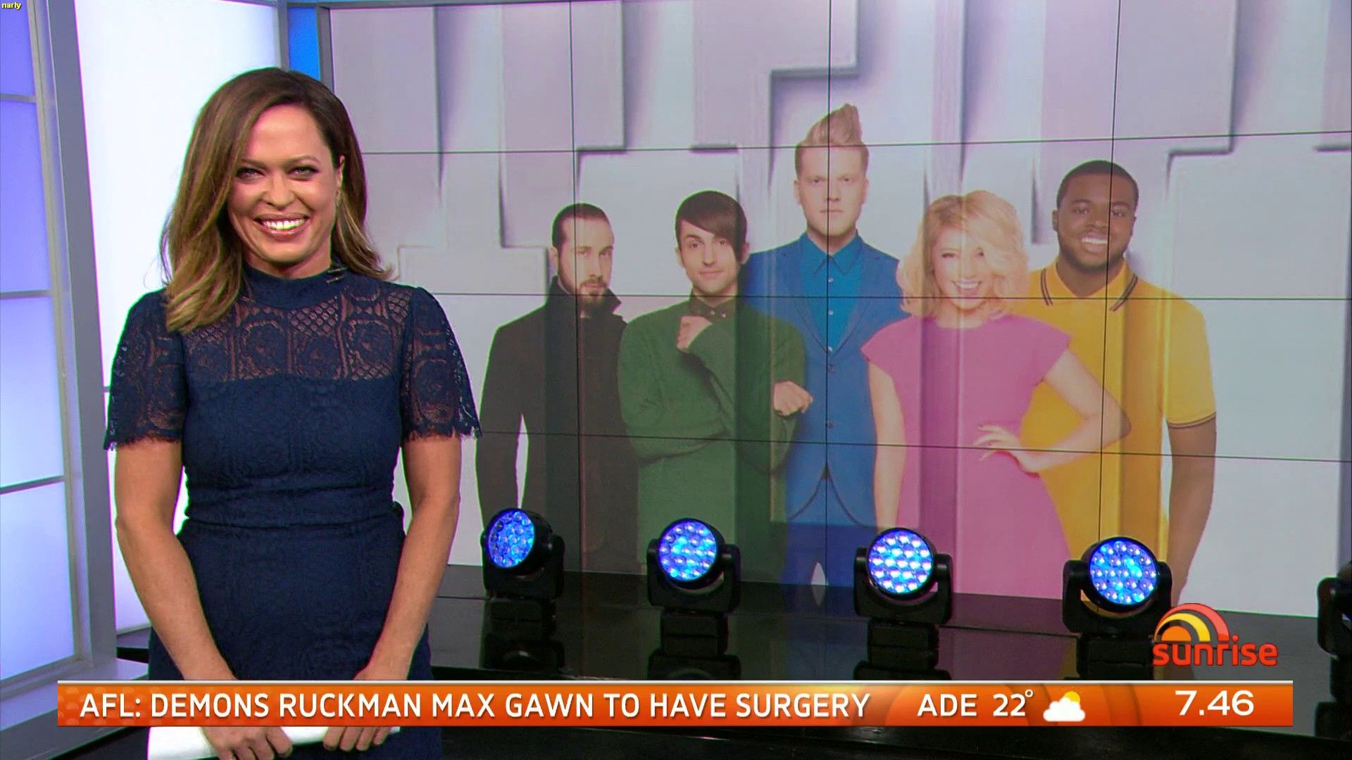 Busy girl - Sunrise News (Nat off), Sunrise Entertainment (Eddy off), Morning Show News and 1130 News.