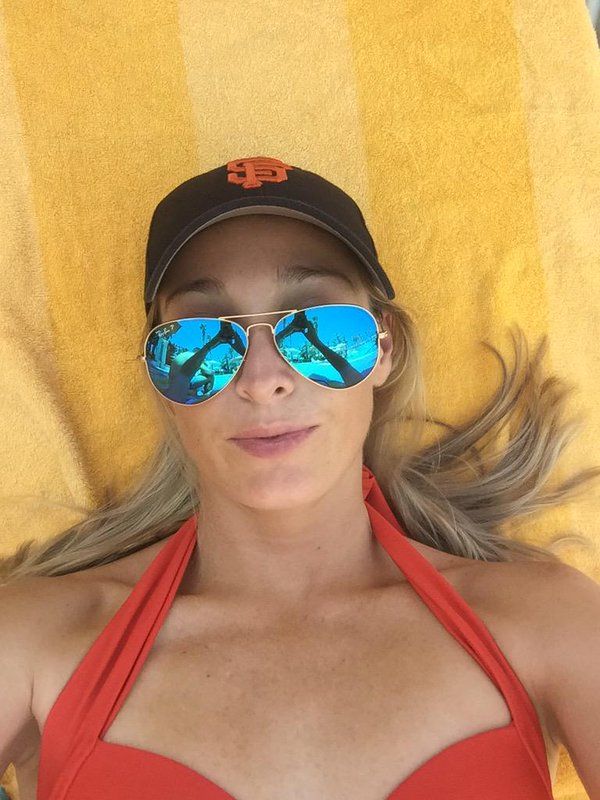 Not sure, was a stunner. But she had no bling on her left hand.
