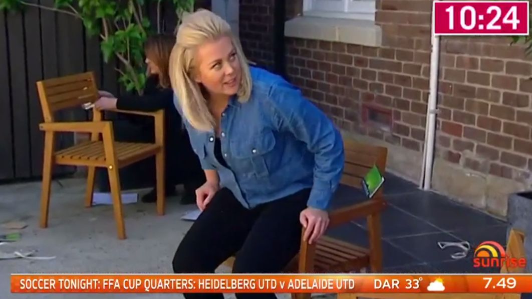 Well, I don't have time nor patience to learn screen capping - but I can screenSHOT and edit/crop off their website This is from the other morning's flat pack chair building contest... Looks to me like Kochie had the best view of the day