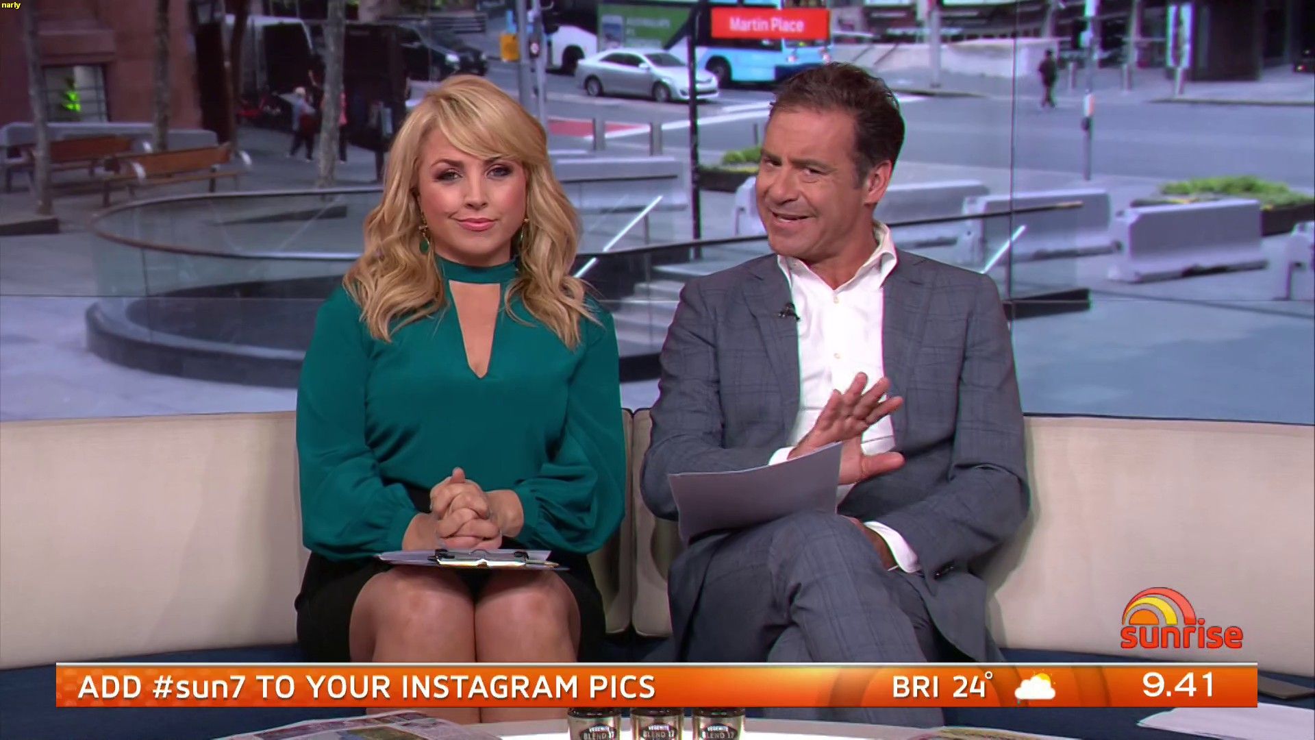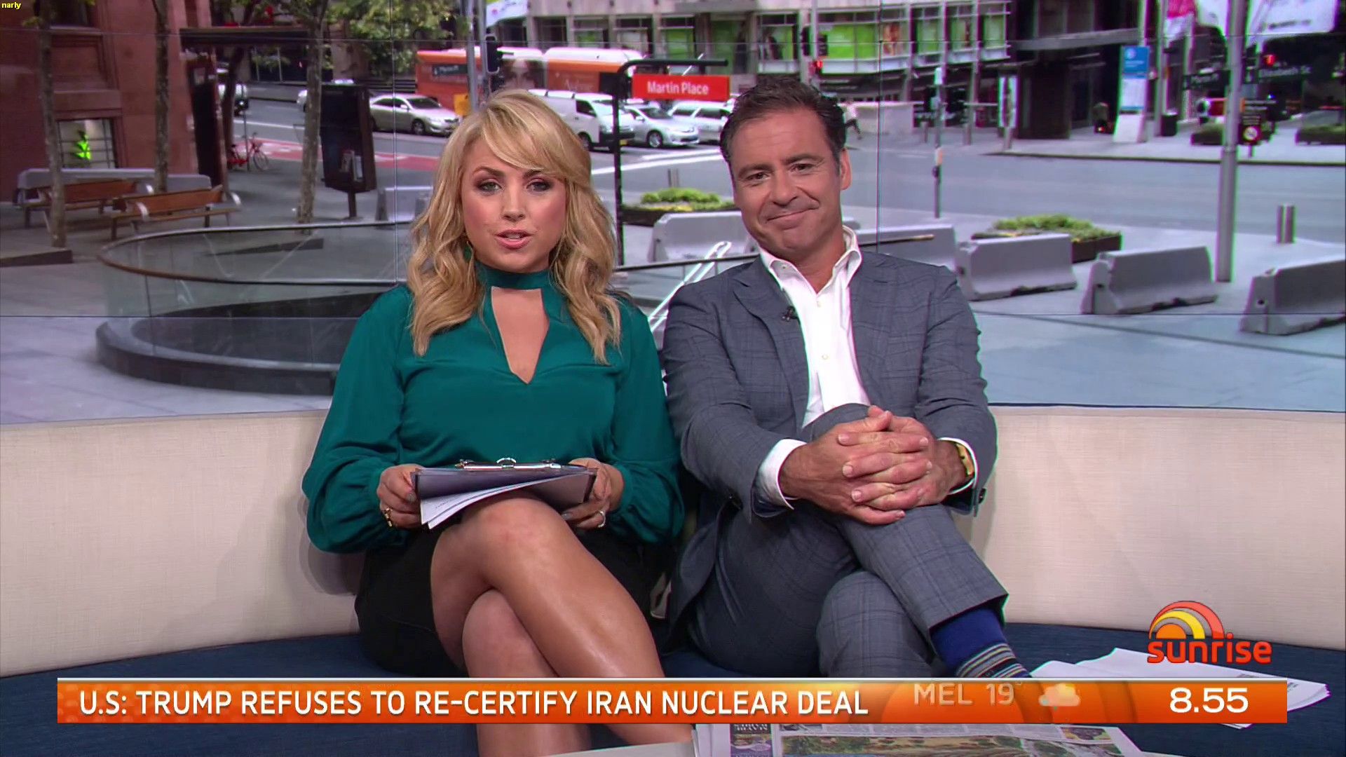 Was Mon wearing stockings today, right at the end of the show it looked like it,.