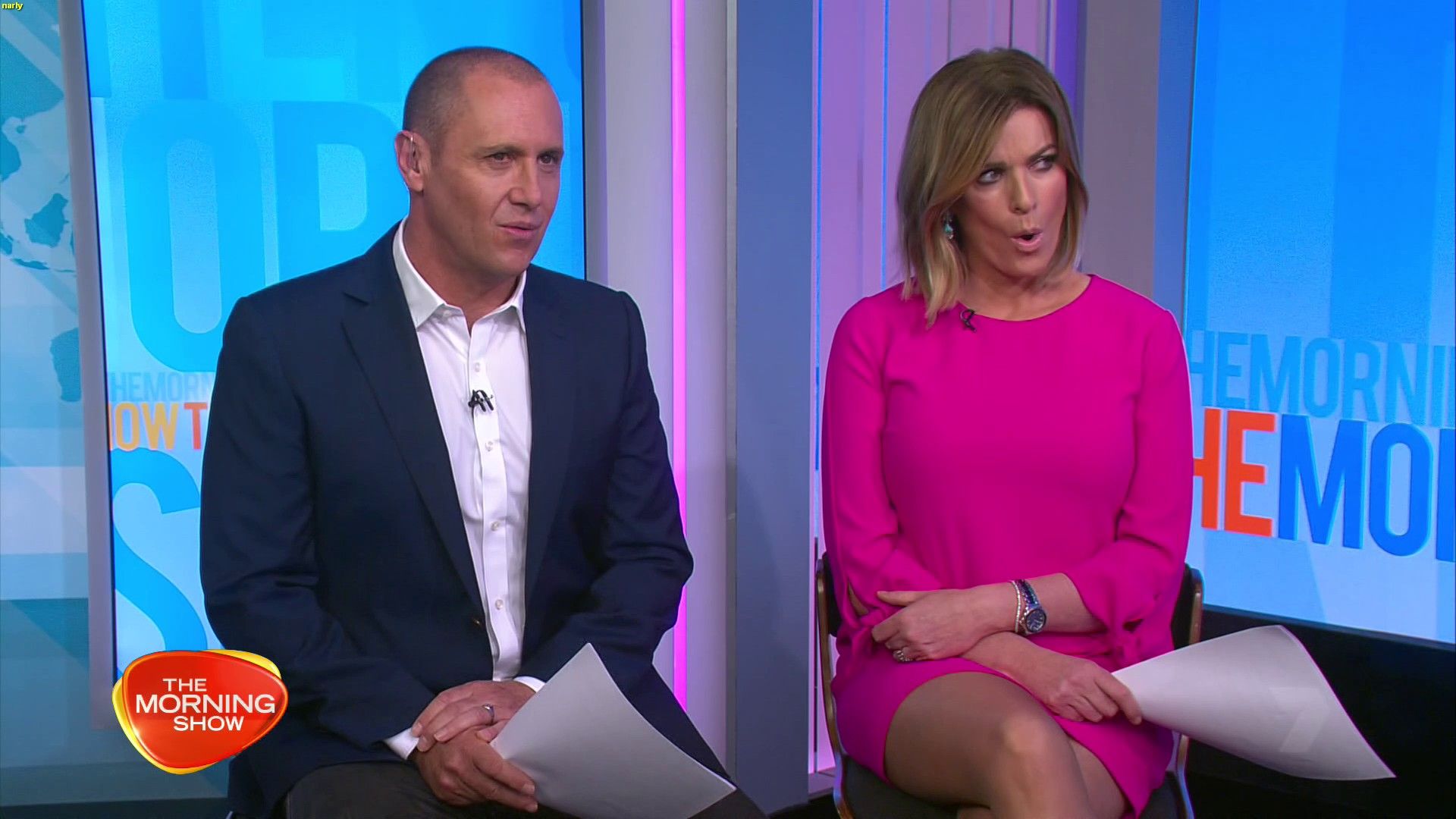 Right at the end of today's show they scared Kylie during the commercial break. She showed plenty of leg, upskirt maybe just missed out. It's on there website and facebook page if anyone wants to check it out.