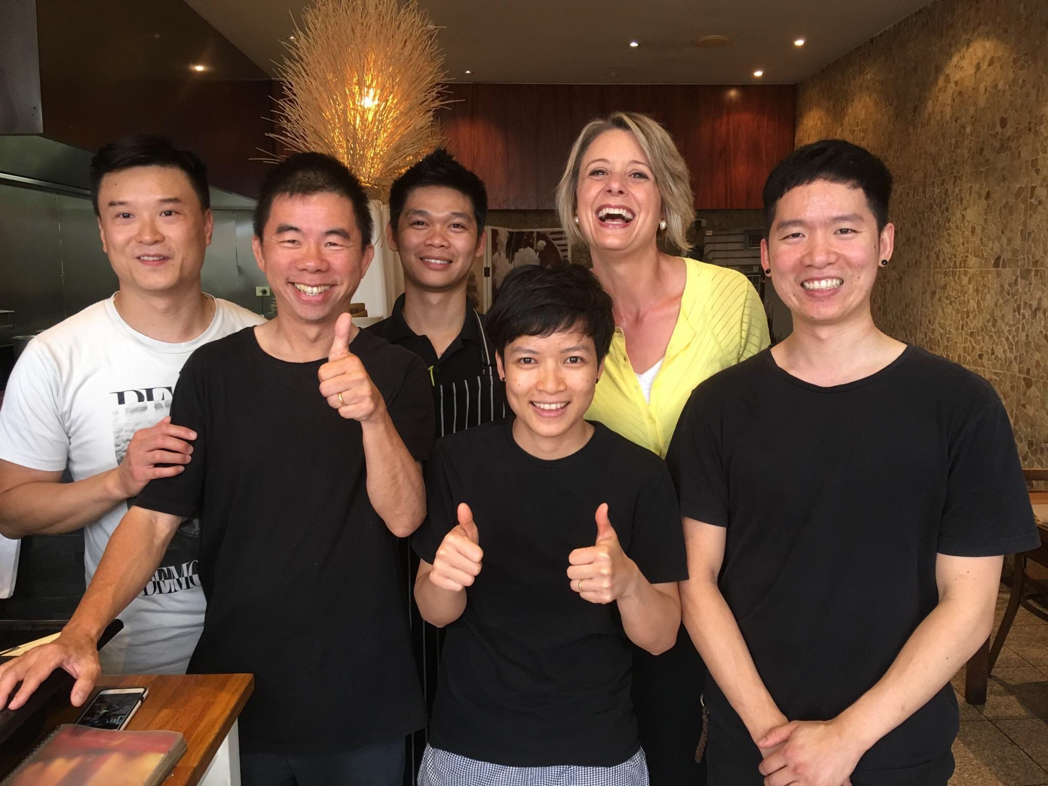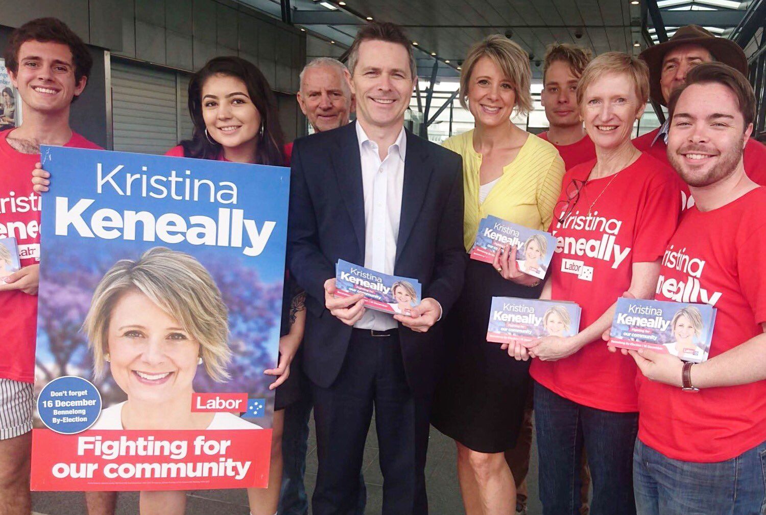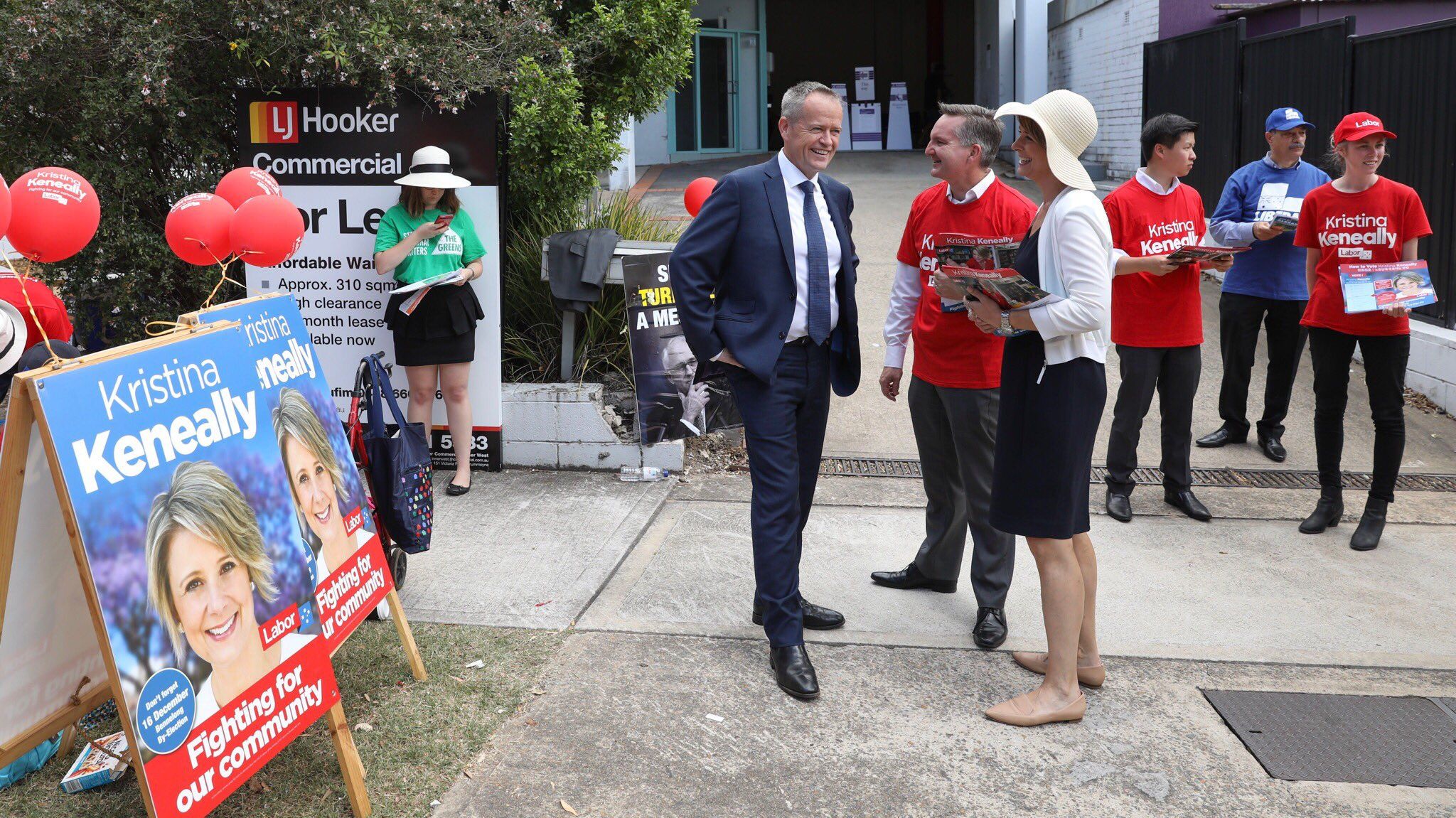 Young Liberals (handing out for JA) are posing for photos with Kristina Keneally outside #Bennelong pre-poll. Lol.
