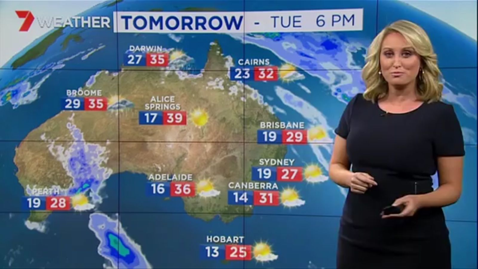 Jane has an interestingly unorthodox presentation style, always saying "we'll be warmer" "we'll be colder" and then she says, "there will be rainfall in this part of the state (points at Gippsland). If I didn't know any better I would assume she thinks the audience are a bunch of low life morons who just stare at her tits and hip wiggles. Keep up the great work boys