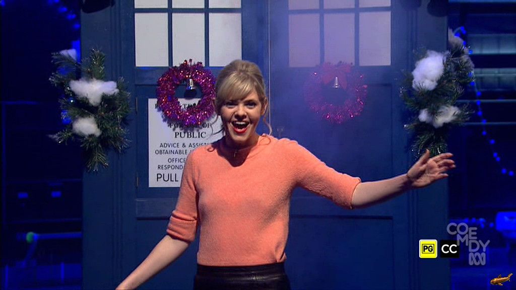 Braless and miniskirt on Whoviansmas Xmas Special.