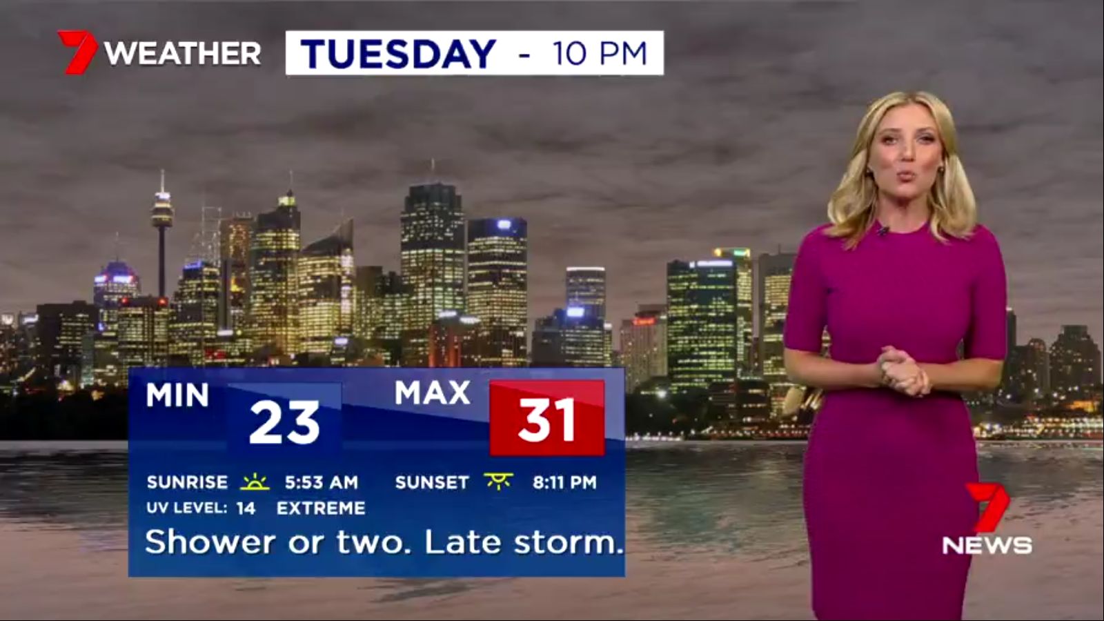 atefooterz wrote: I am noticing when i flick to the end of 7 news Sydney a blonde weather? presenter walking to the desk 9 style. Anyone know who tiz? Angie Asimus