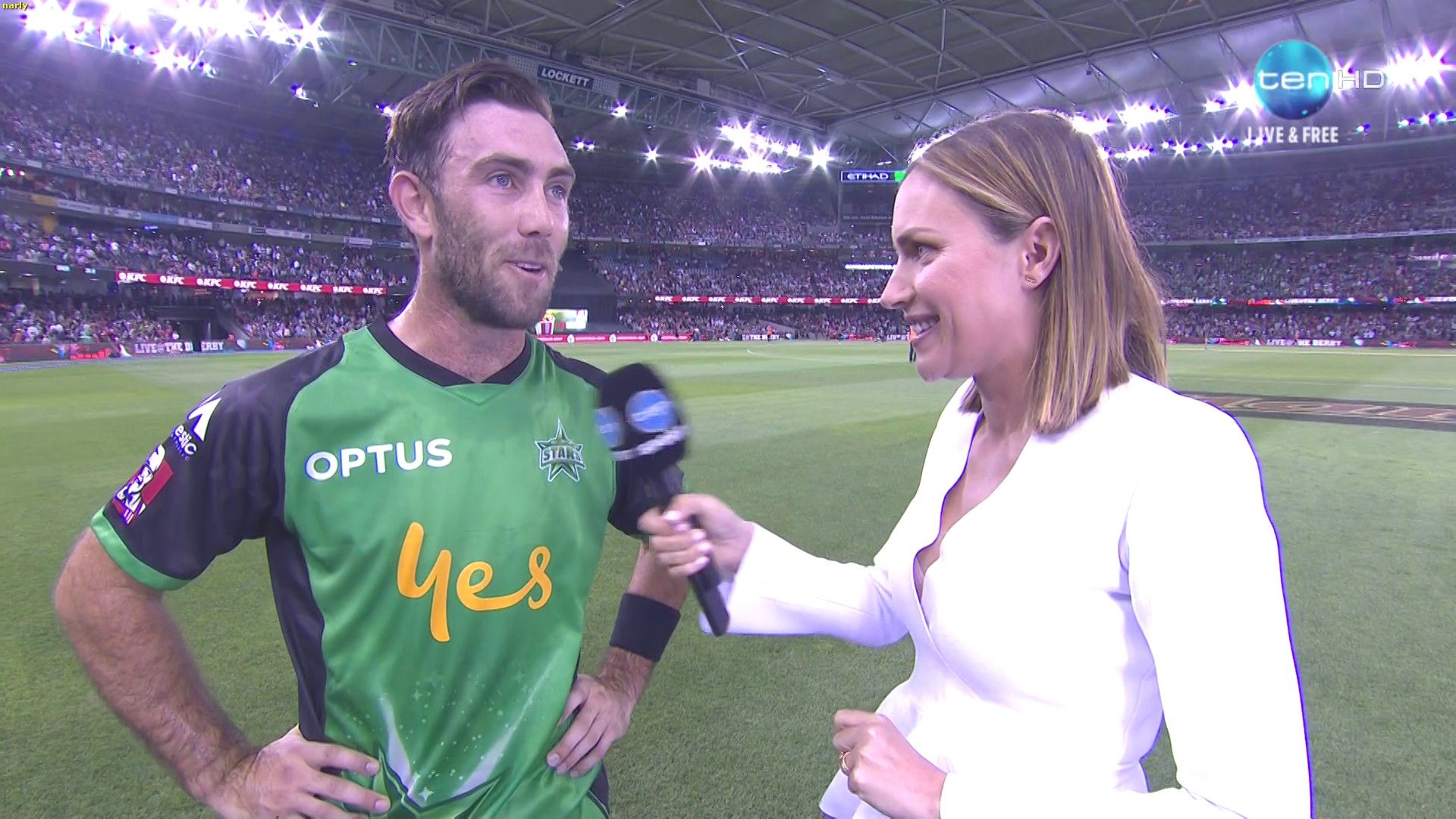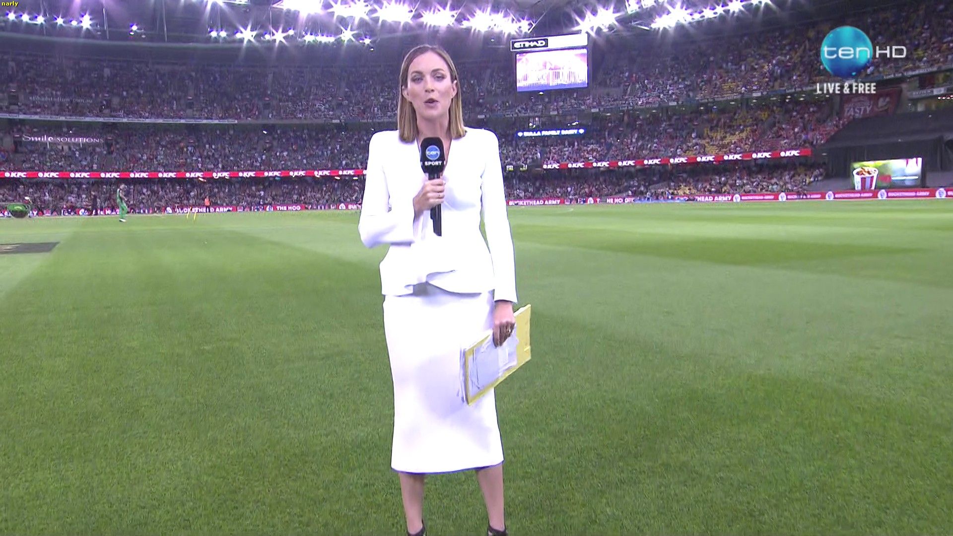 Roz looking a little pokie during the innings break show.