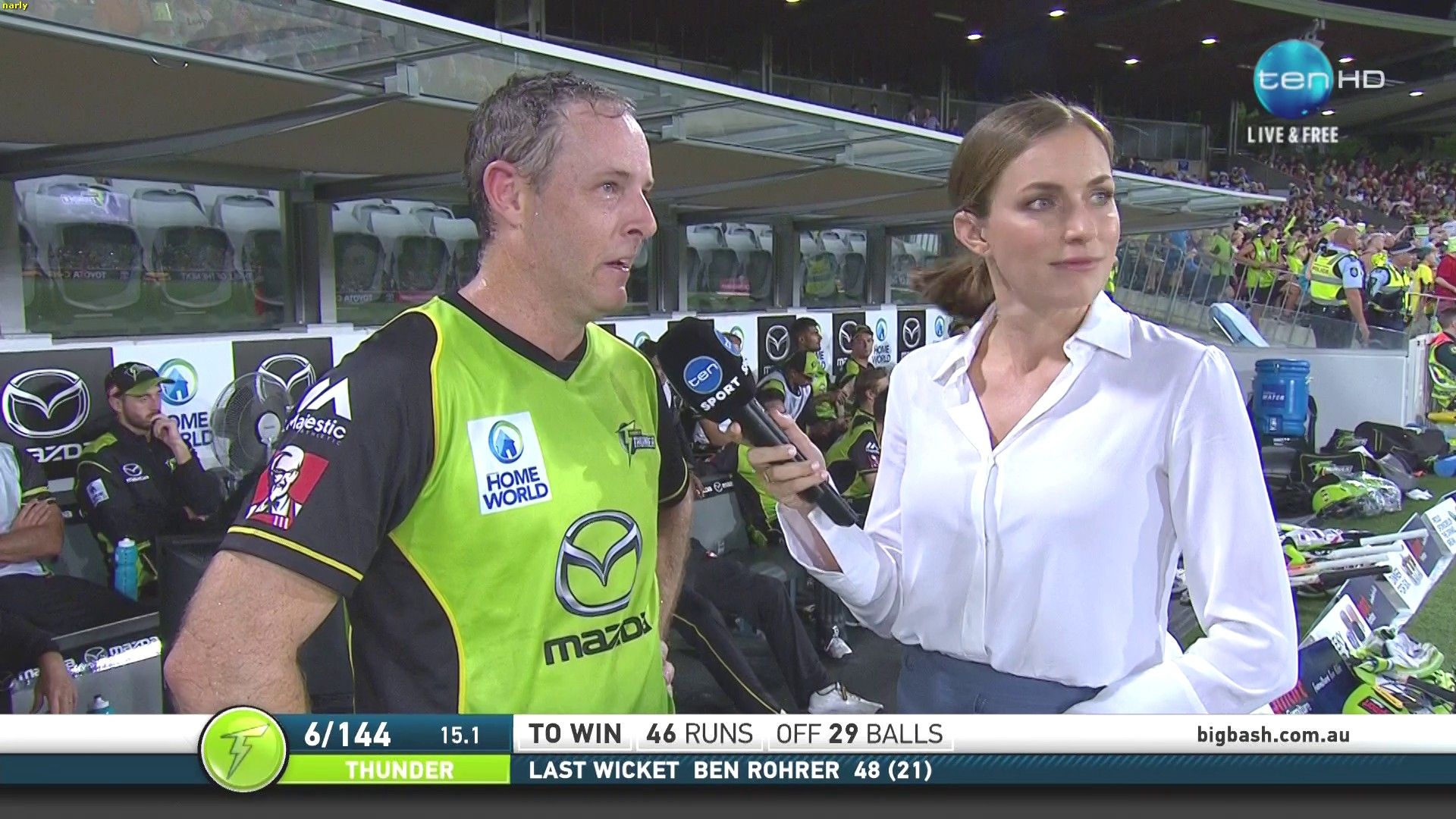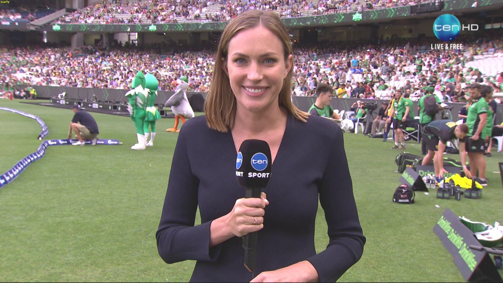 Surely she should wear pants and a shirt to bring equality to the line-up