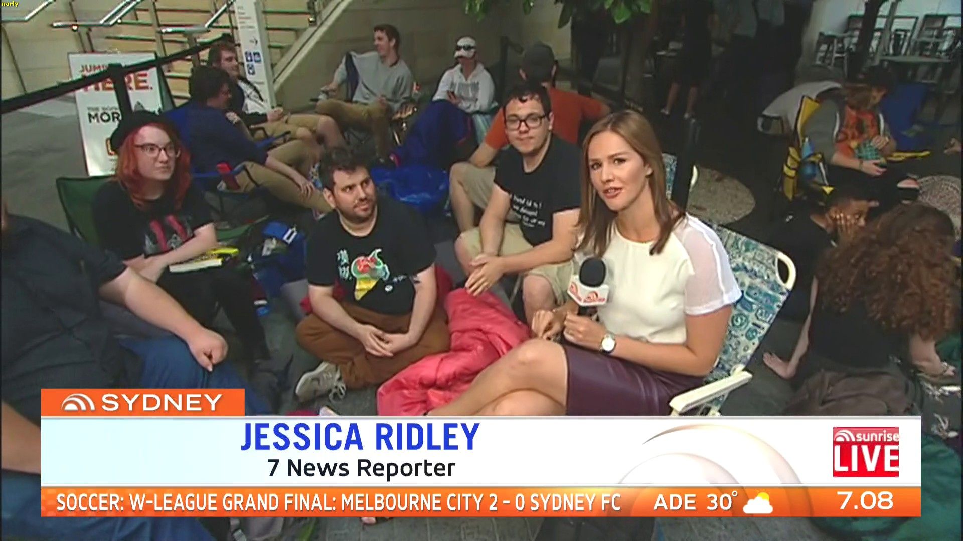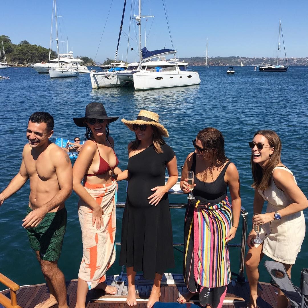 Next to a very pregnant Kate Creedon who looks ready to pop. Gabrielle Boyle is there also. Always great ''off the field'' camaraderie between the Channel 7 and 9 girls