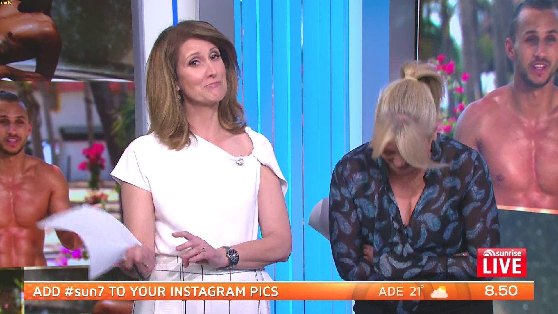 gonzee wrote: :cheerstothat: thanks king !!  ...don't know why she changed her top...  In the past, she has claimed to have spilled coffee on her top as a reason to change. It is hard to believe that modesty would have necessitated this change as can't see anything!