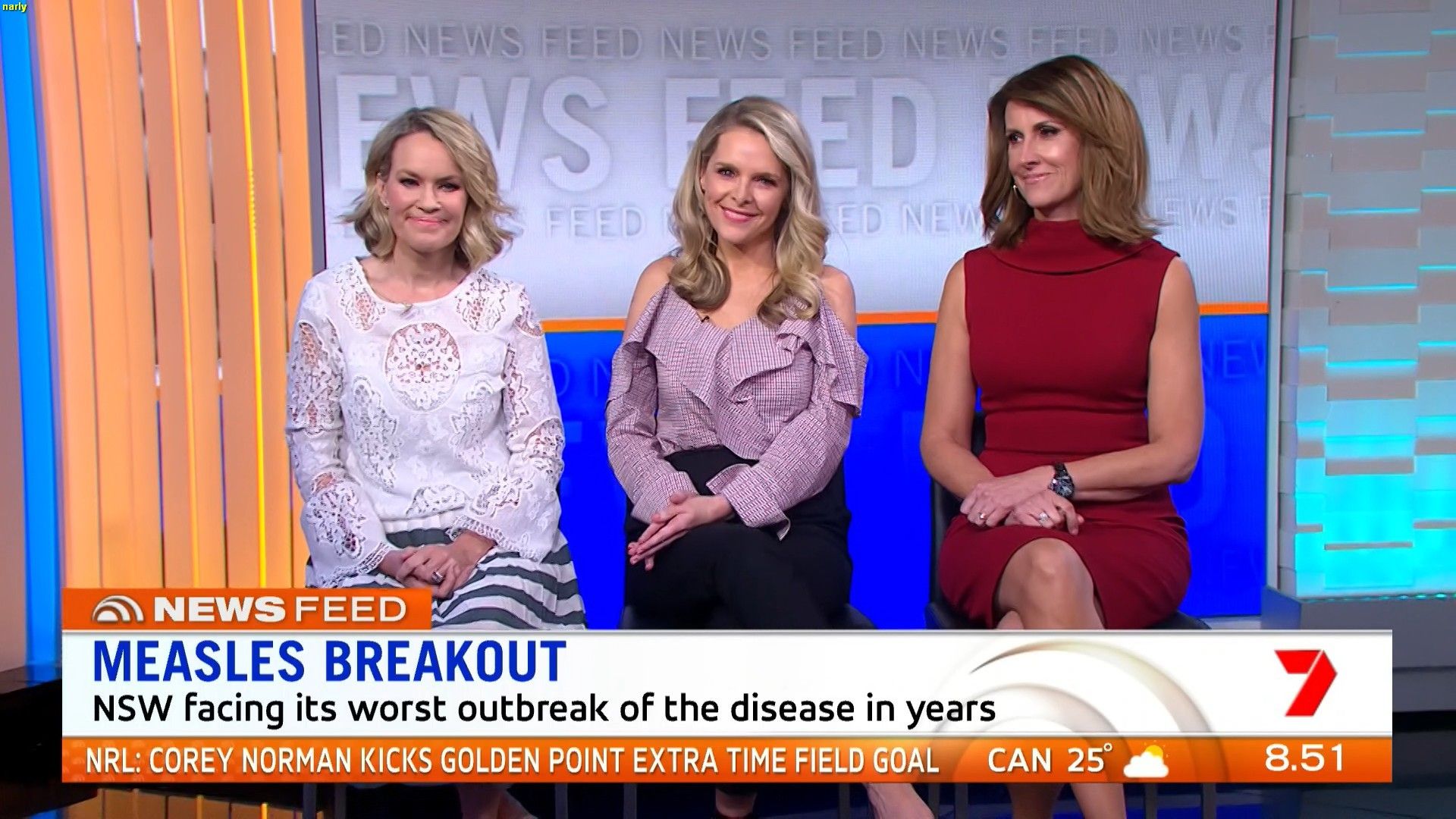 Samantha Brett showcased her trim pins with a short white dress meanwhile Natalie, 51, stepped out in a short-sleeve magenta knit T-shirt, which she paired with navy blue trousers and rounded out her look with a pair of strappy black high heels.