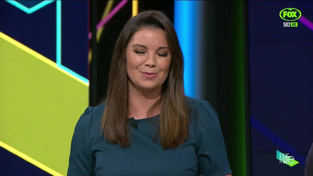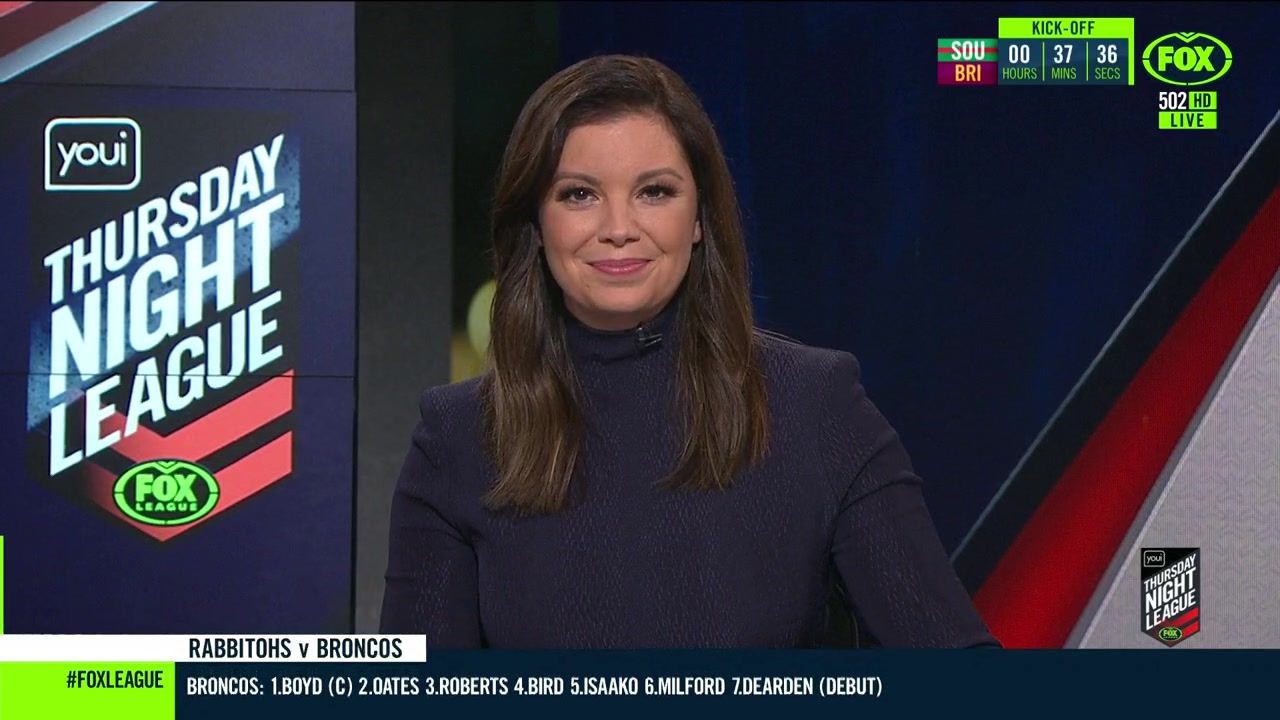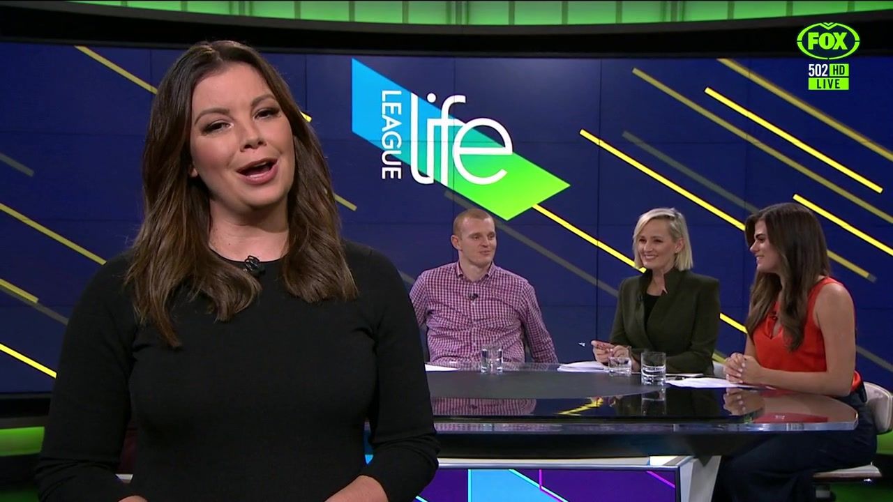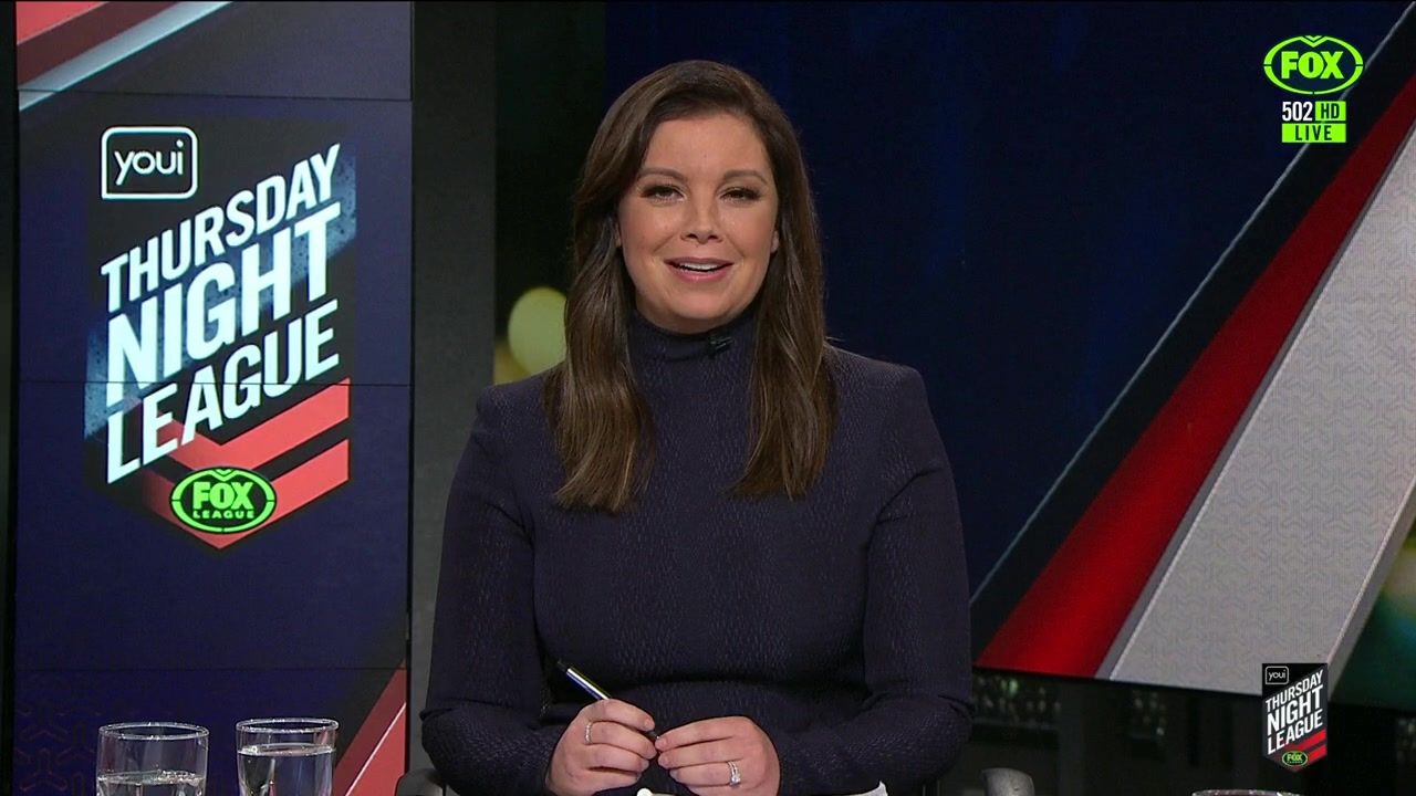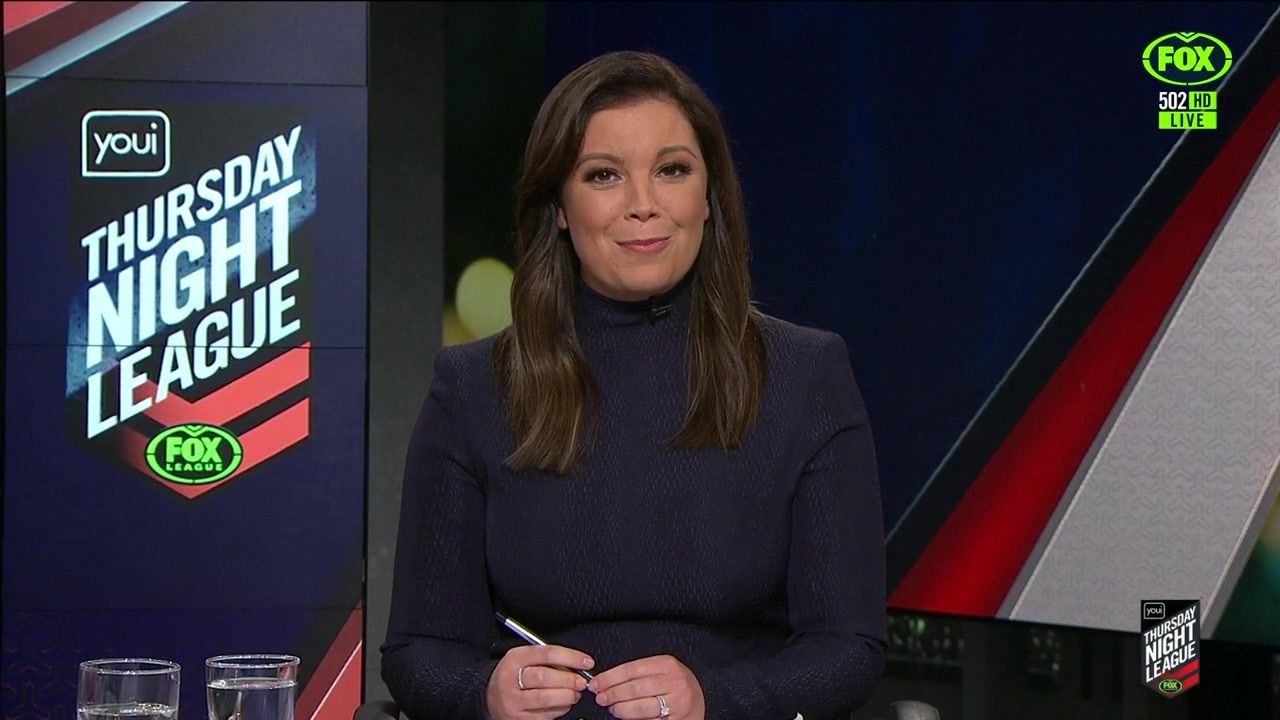 NRL 360 17.04.19 Manning the desk while Iken is on holiday. Atleast she's not wearing black for once.
