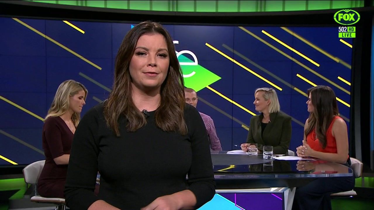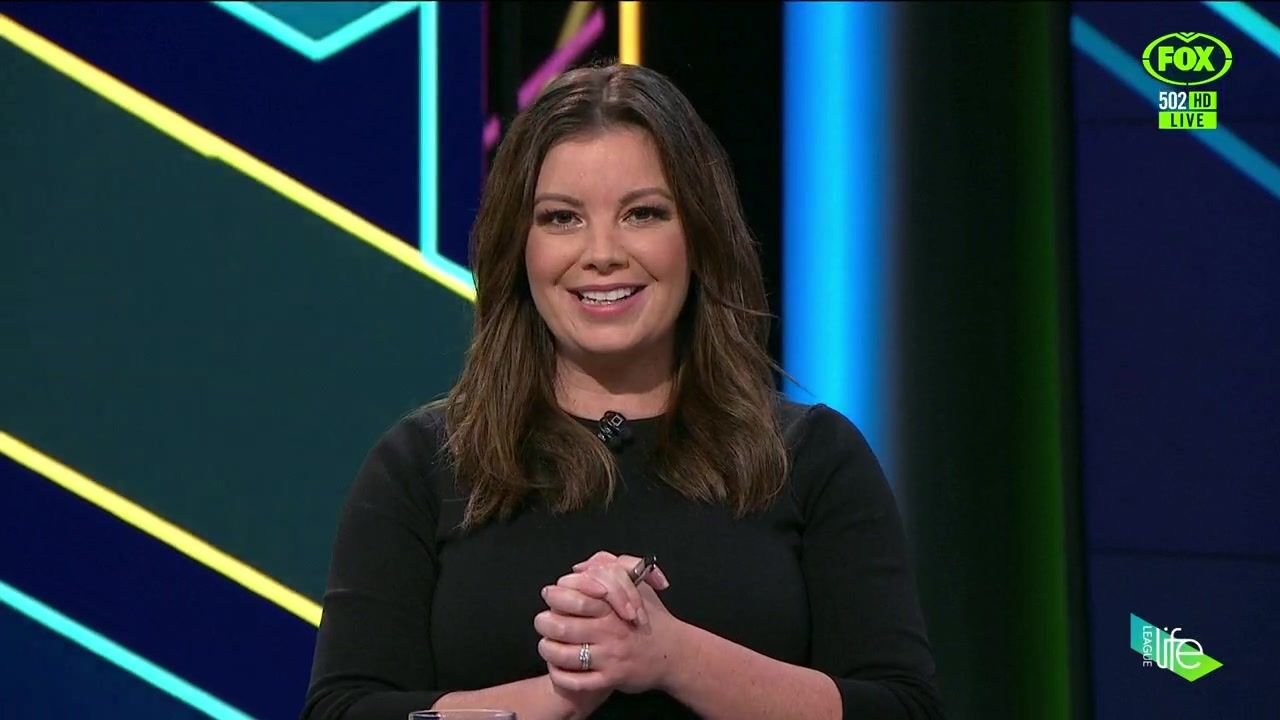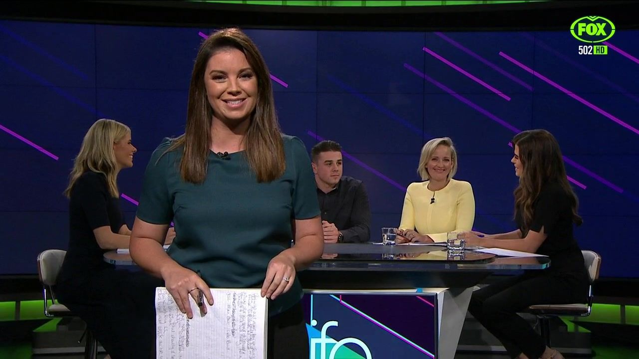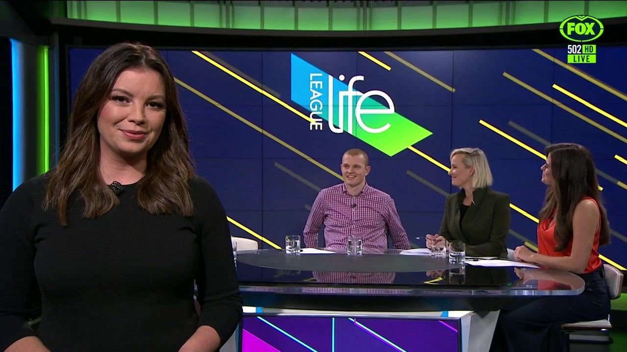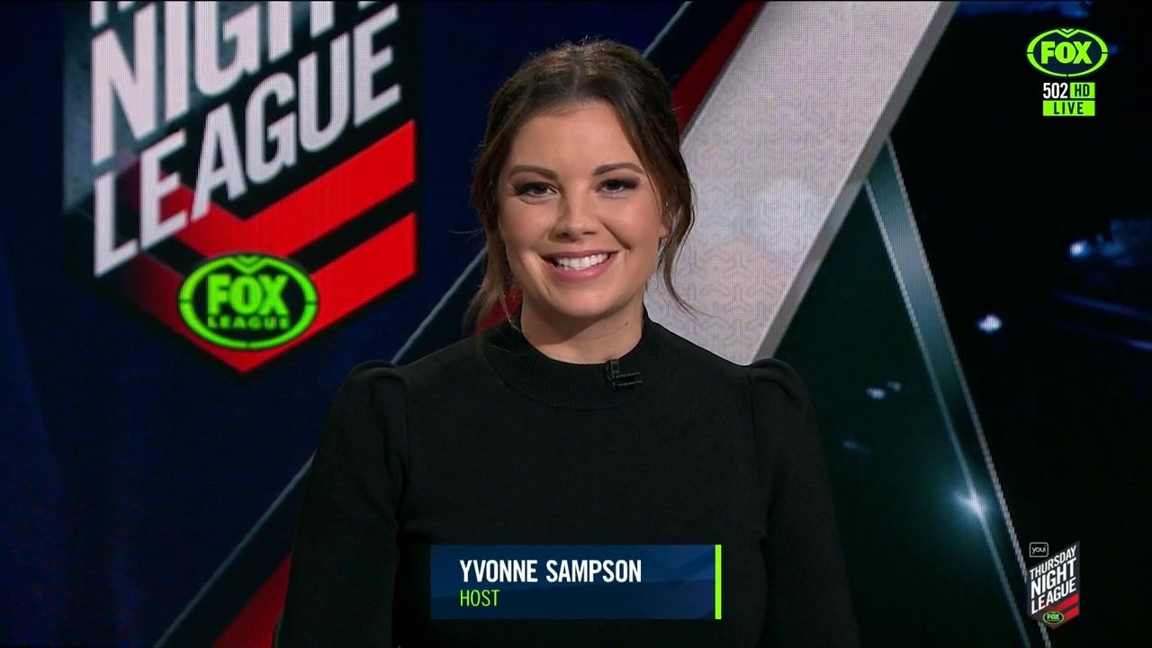 NRL 360 17.04.19 Manning the desk while Iken is on holiday. Atleast she's not wearing black for once.