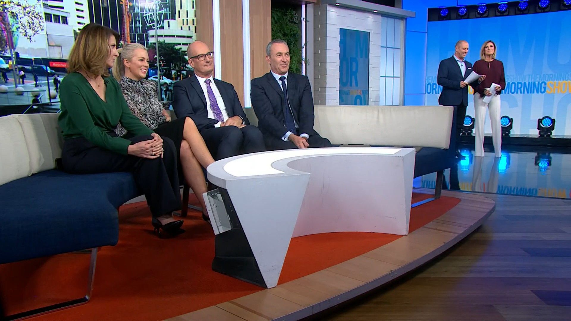 Smoking hot this morning. Leather skirt with a nice split up the thigh. Stunning