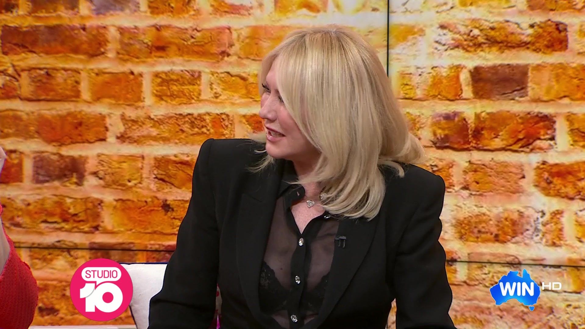 Kerri-anne in sheer black top.