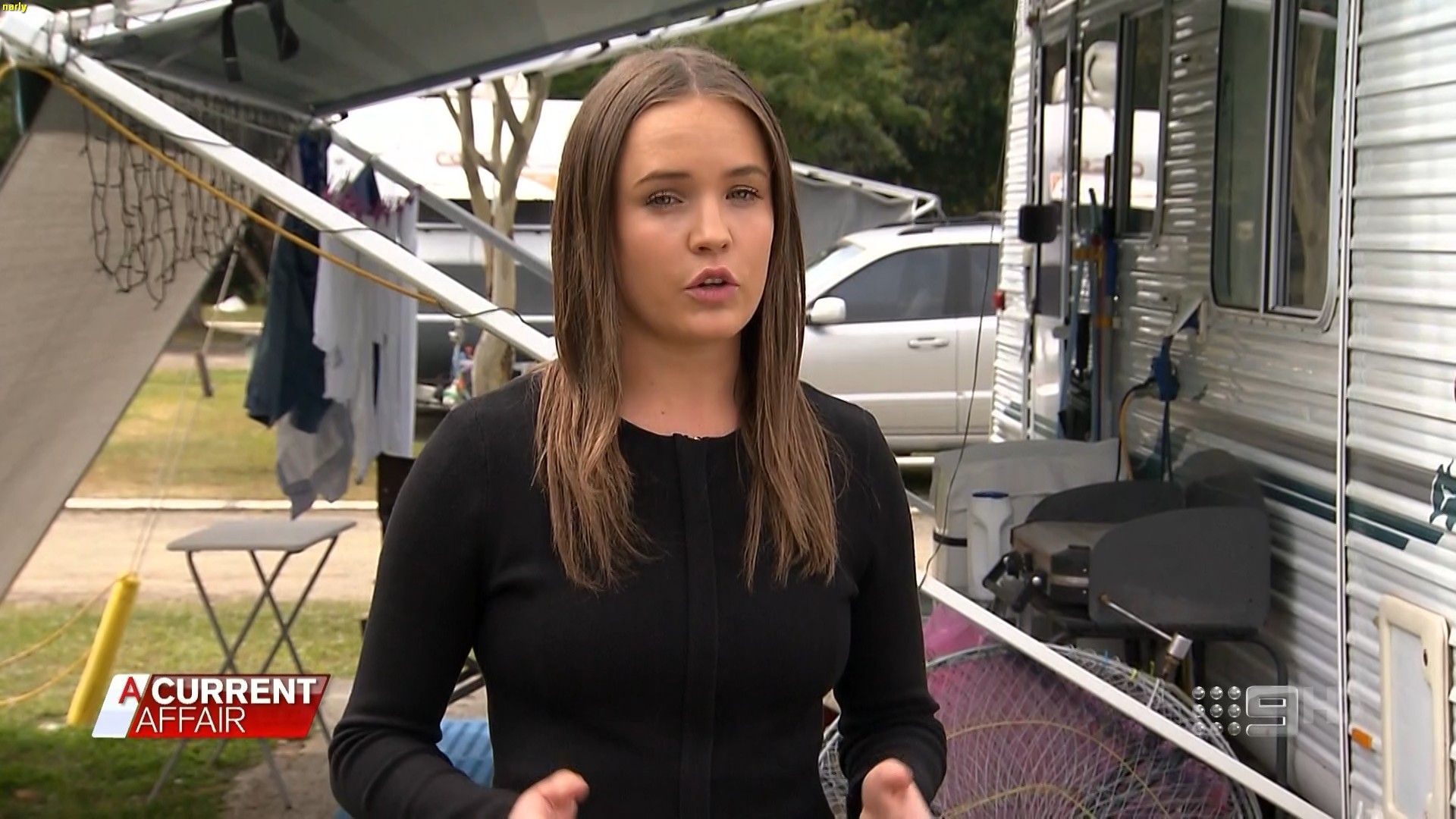 I was watching Have You Been Paying Attention? last night and it featured a story on Channel 9 in Melbourne from last Wednesday, the 23rd of October about a bomb scare at a hotel. The report was done by a rather fetching brunette in a red shirt. Her name was blurred out at the bottom of the screen. Would anyone happen to know of whom I am speaking?
