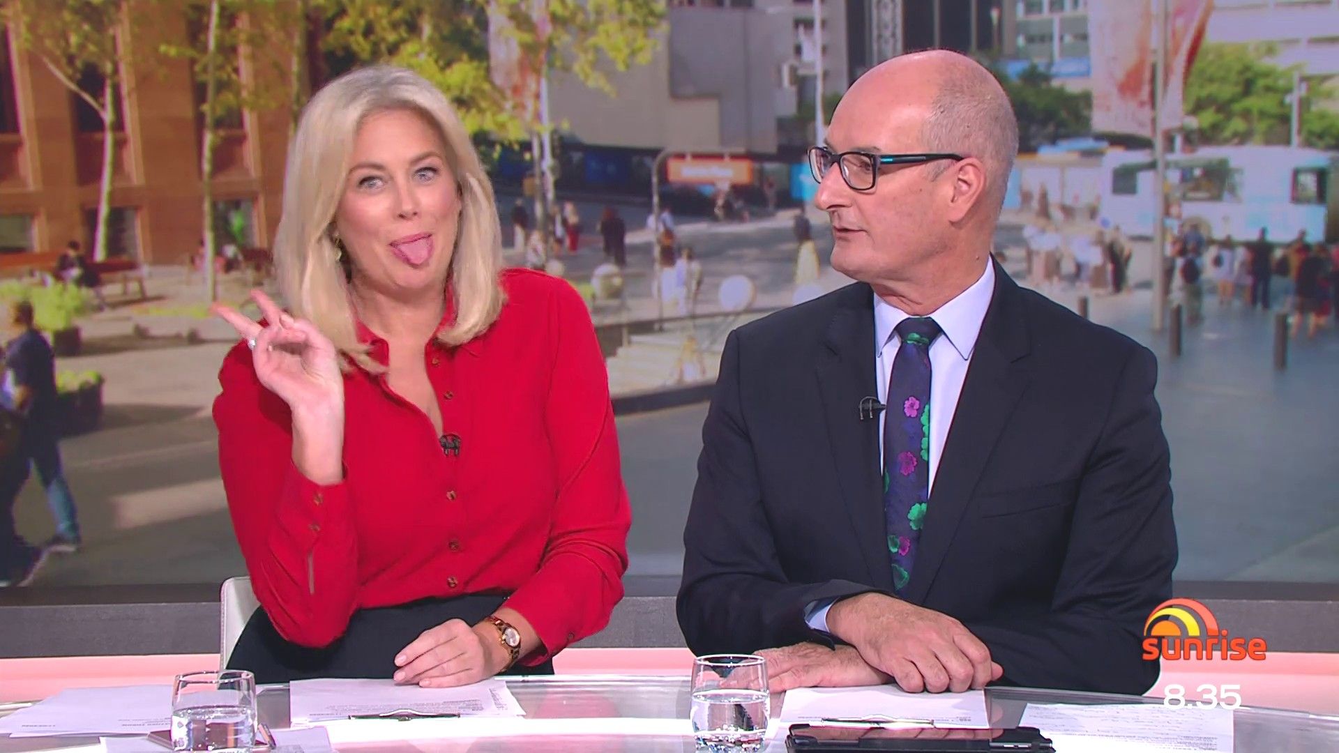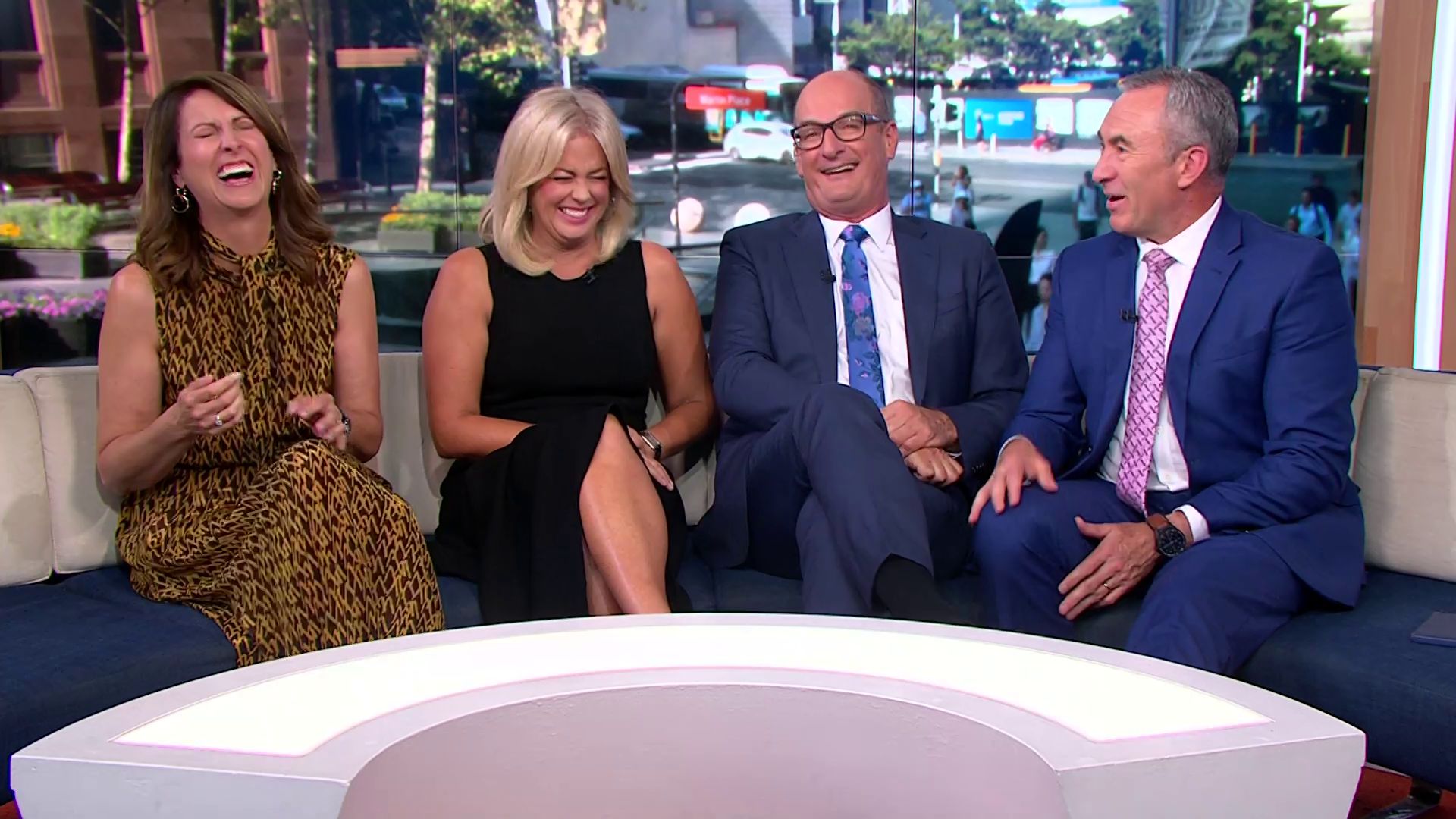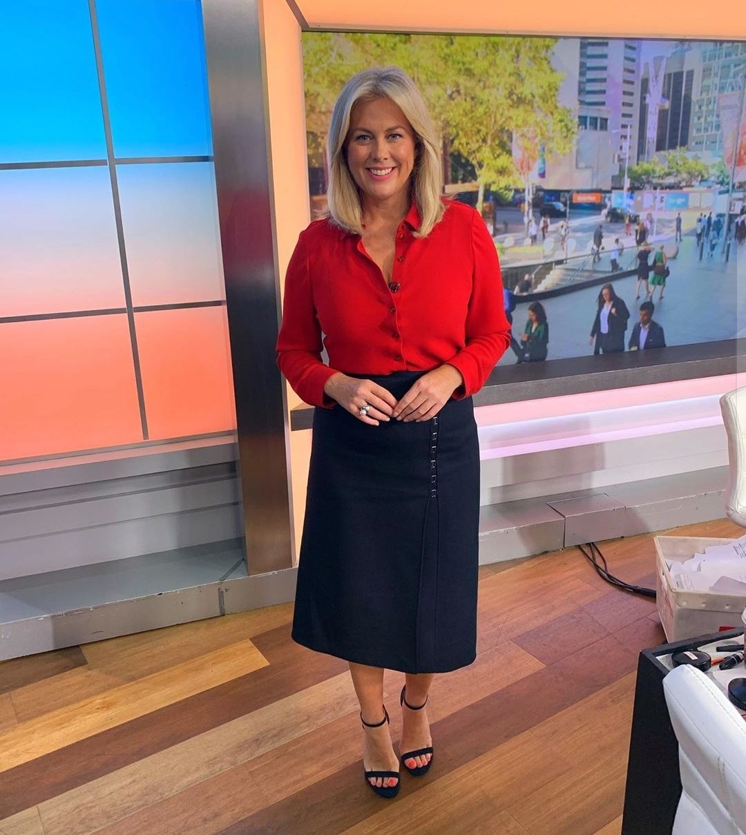 There was a nice shot yesterday at 7:58 when they cut away for the ads and Sam's skirt fell to the left