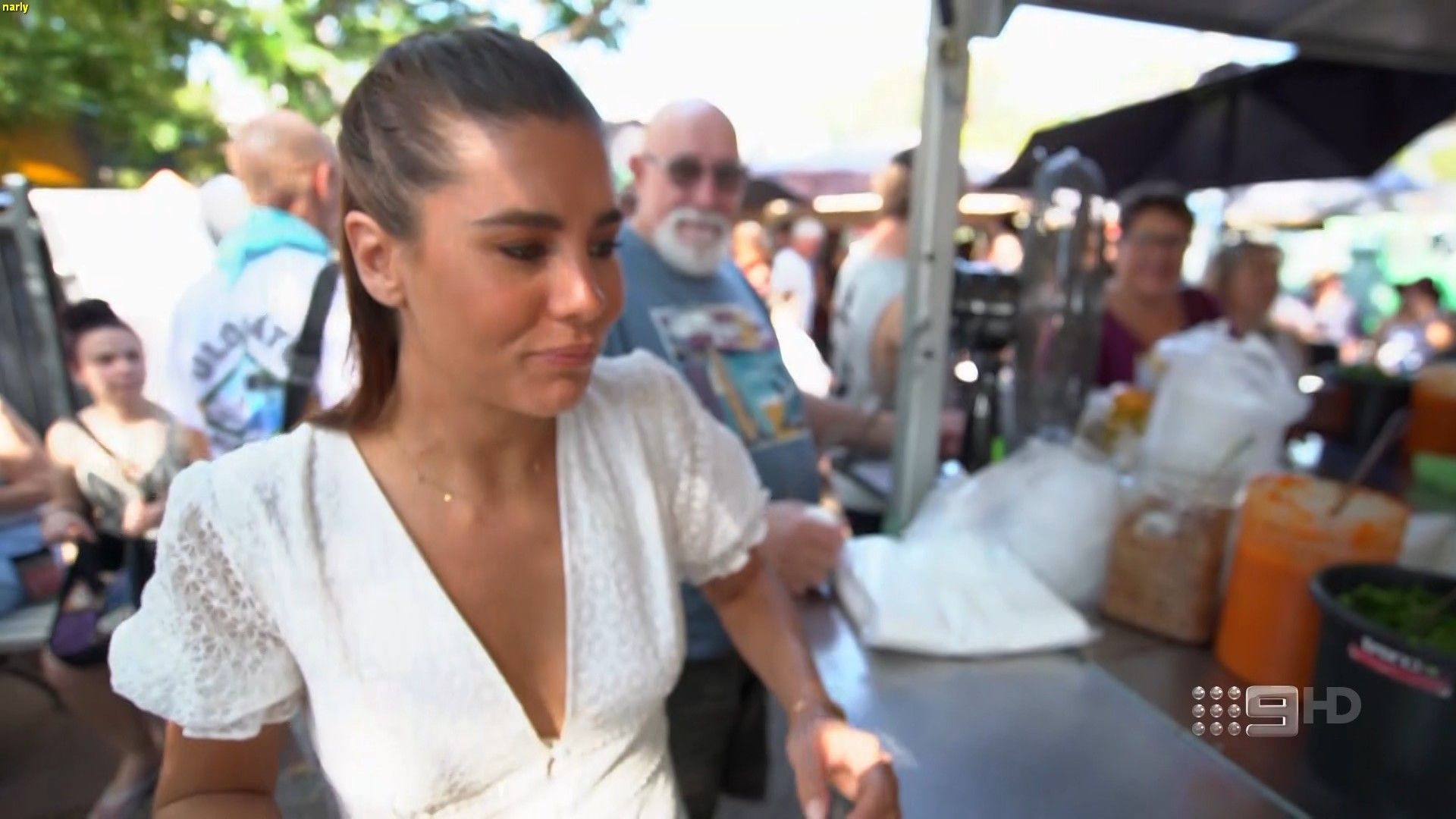 Shirt unbuttoned to her navel and don’t think so was trying to catch the crocs attention!