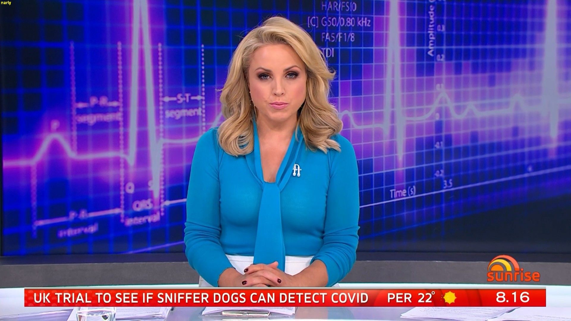 Damn she looked good this morning in the blue top. Standing shots of her showed her body of nicely and the top showed the shape of her breasts beautifully