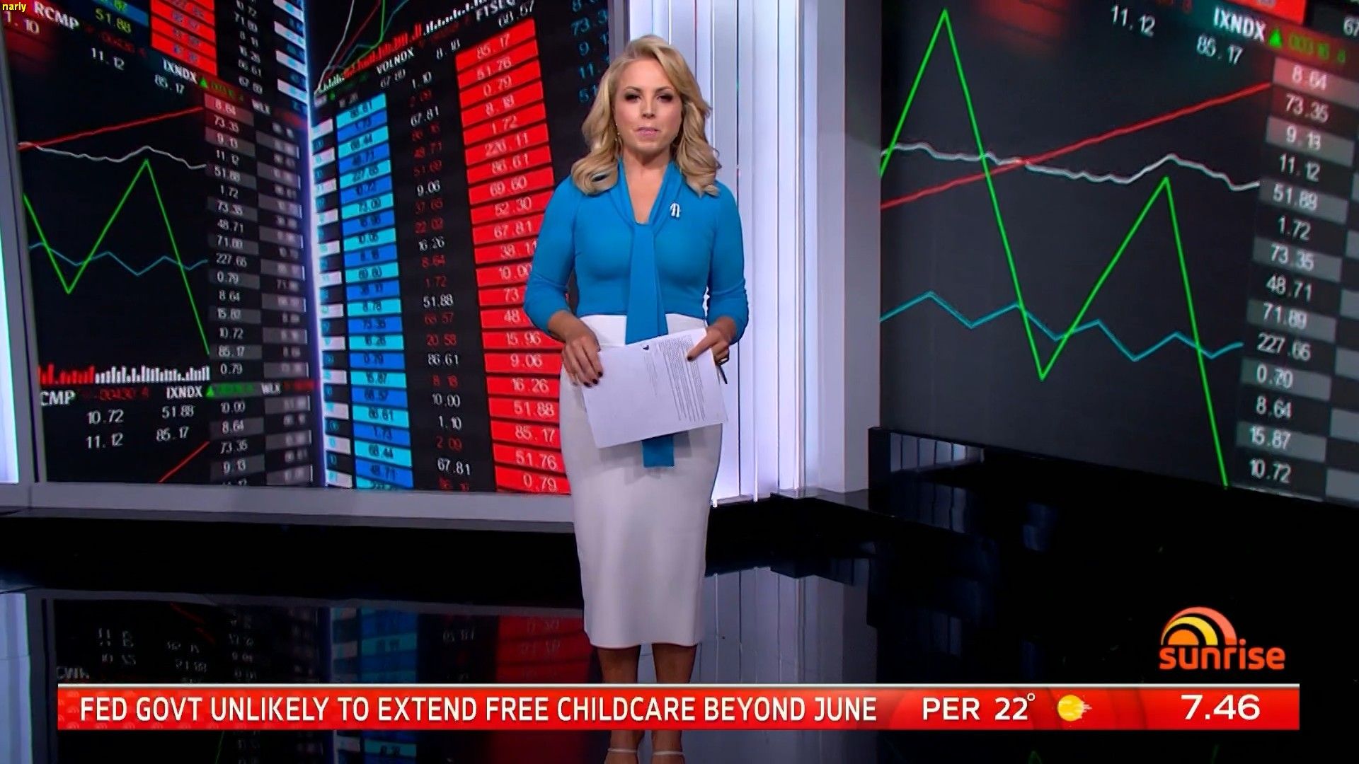 Damn she looked good this morning in the blue top. Standing shots of her showed her body of nicely and the top showed the shape of her breasts beautifully