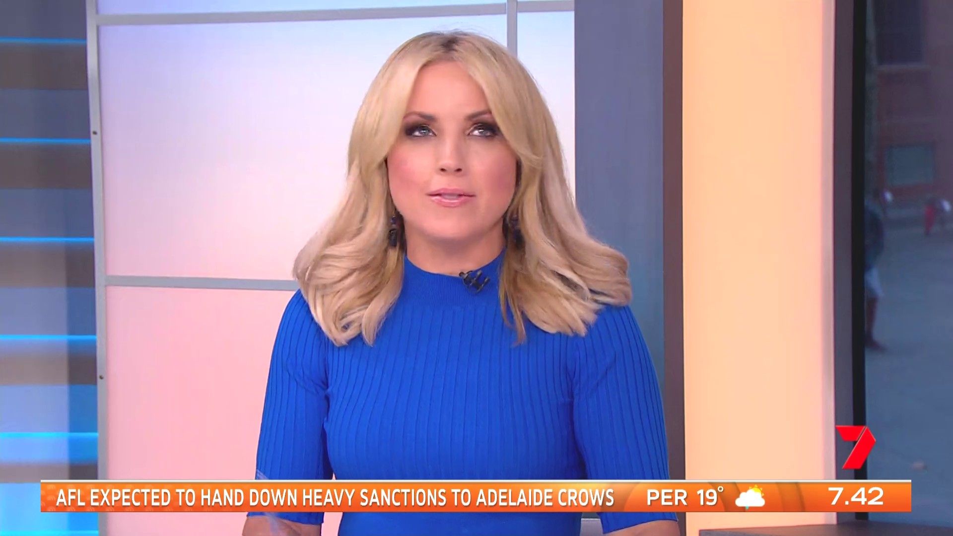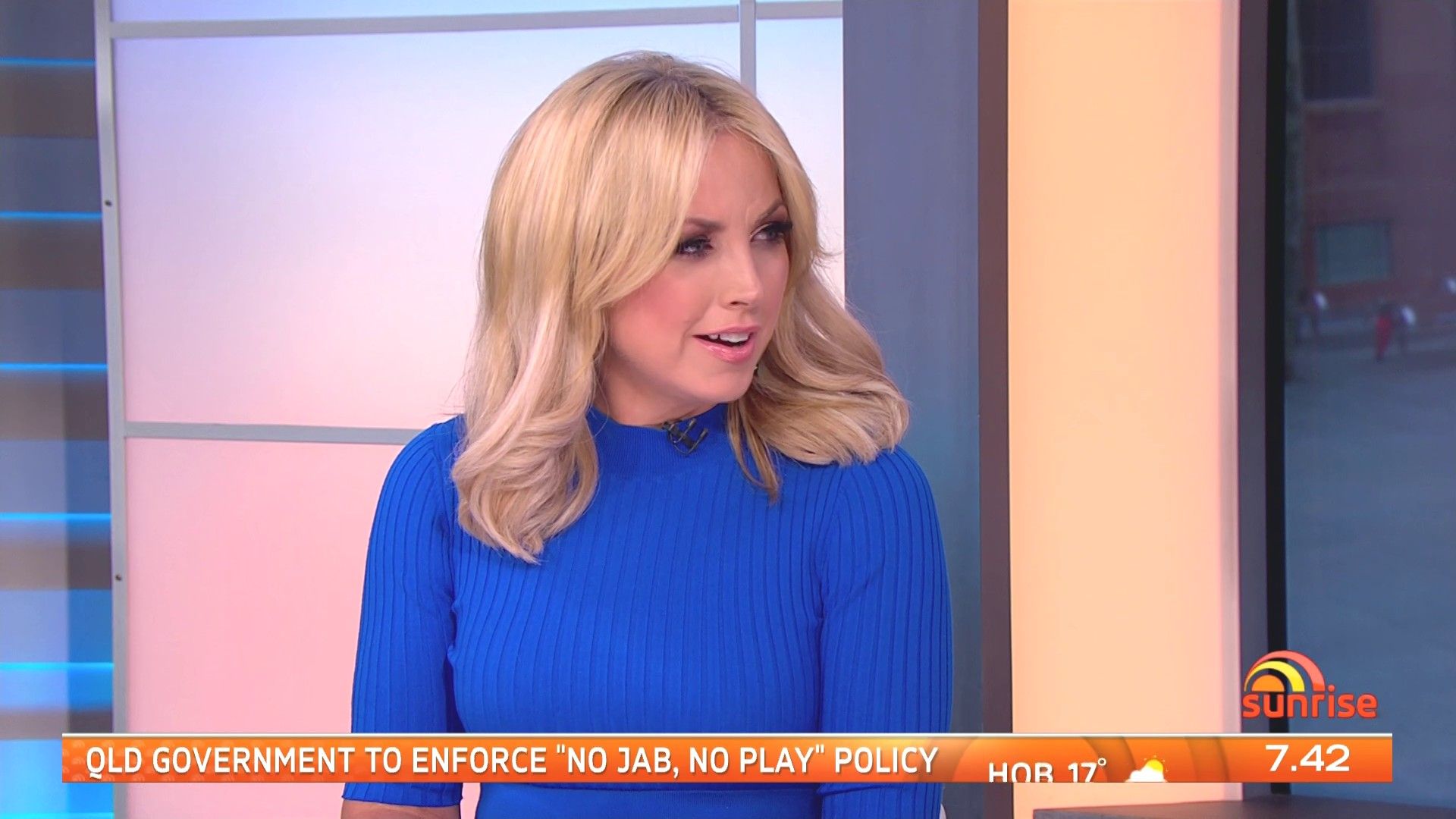 Damn she looked good this morning in the blue top. Standing shots of her showed her body of nicely and the top showed the shape of her breasts beautifully