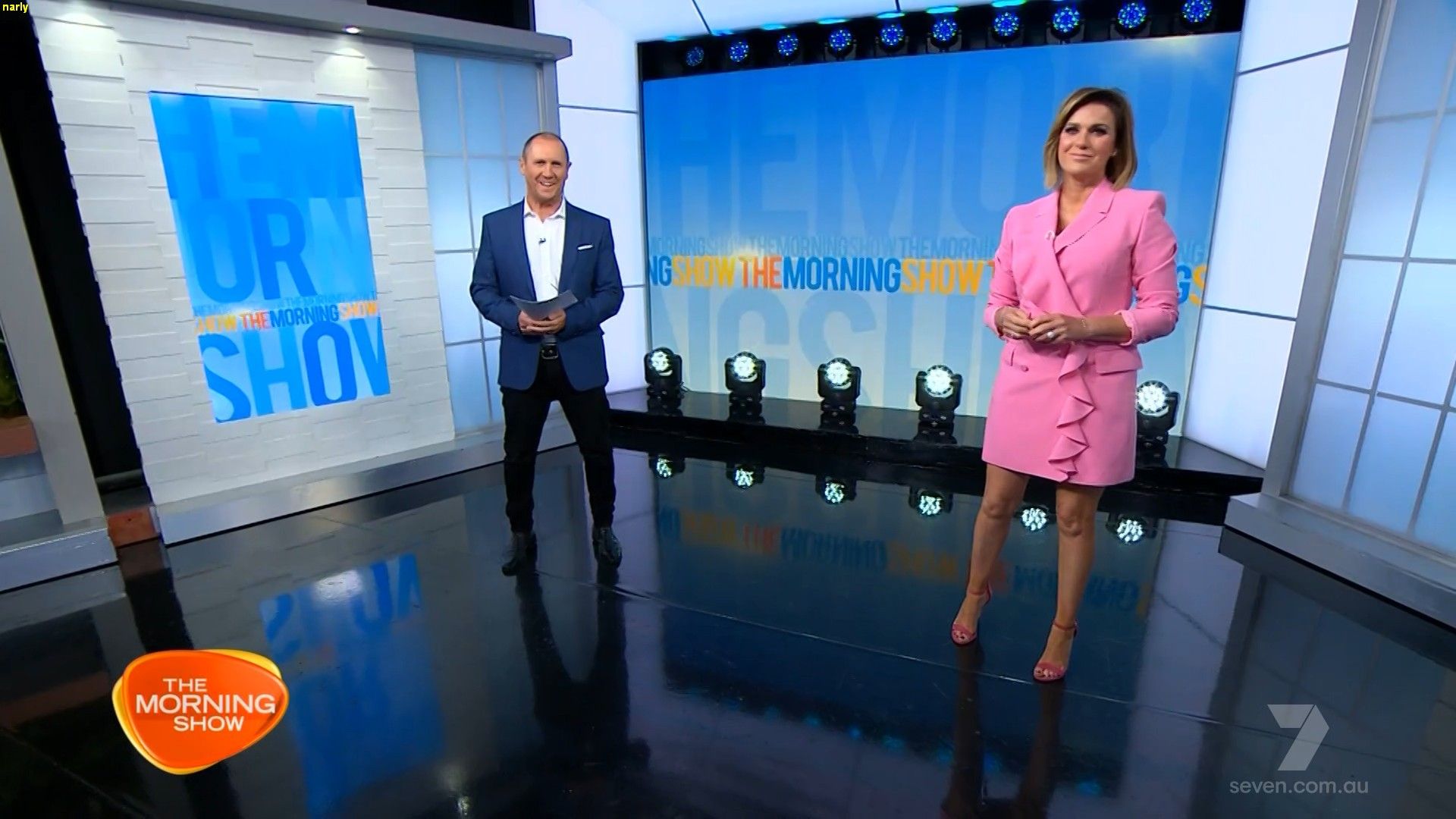 Shame not to see any caps from Friday's episode looked stunning in the short pink number. Legs truly on display even a bit of standing up. Been pretty decent last 2 weeks thought would've seen more from our valued cappers