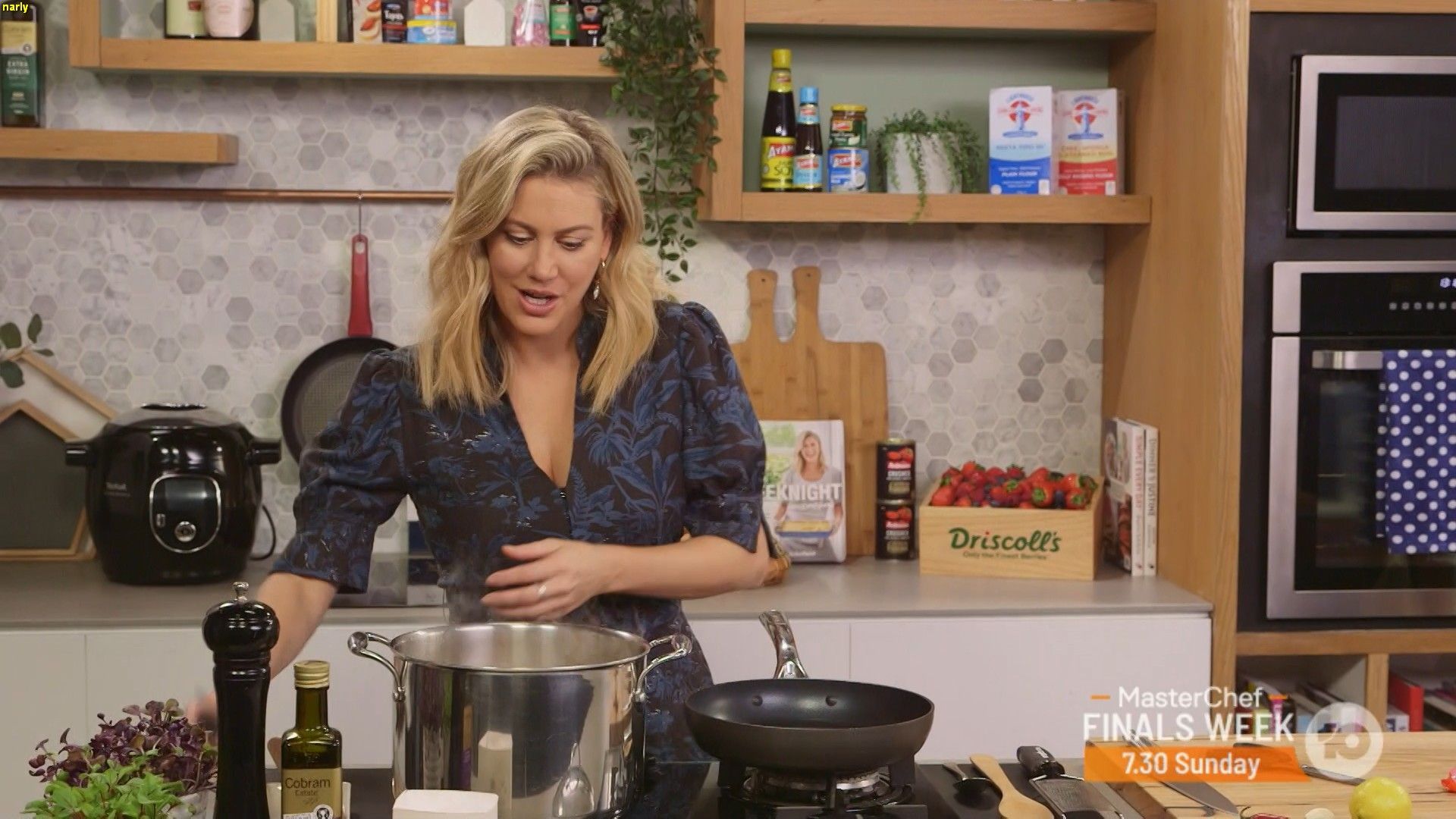 Fark.......isn't she just sensational in that red blouse above? A hint of nipple. I reckon Justine would have a fantastic set of tits if she left the bra at home