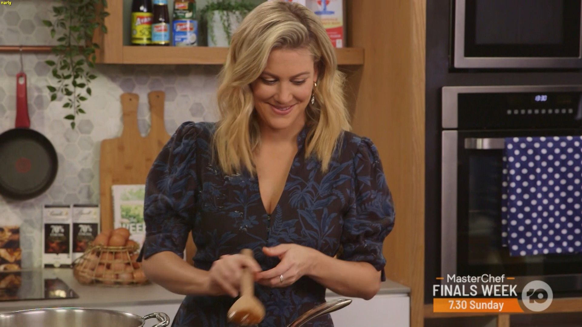 Fark.......isn't she just sensational in that red blouse above? A hint of nipple. I reckon Justine would have a fantastic set of tits if she left the bra at home