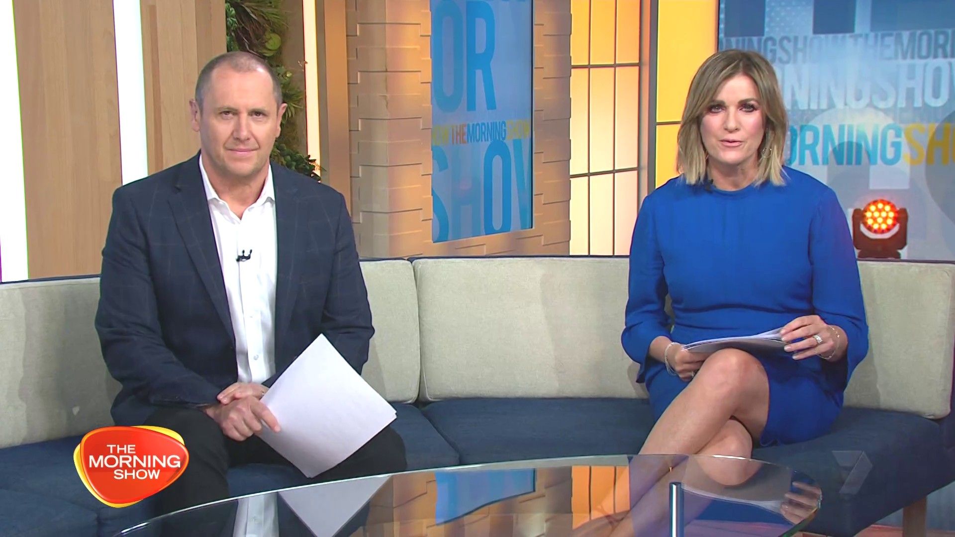 Nice legs in blue skirt again today