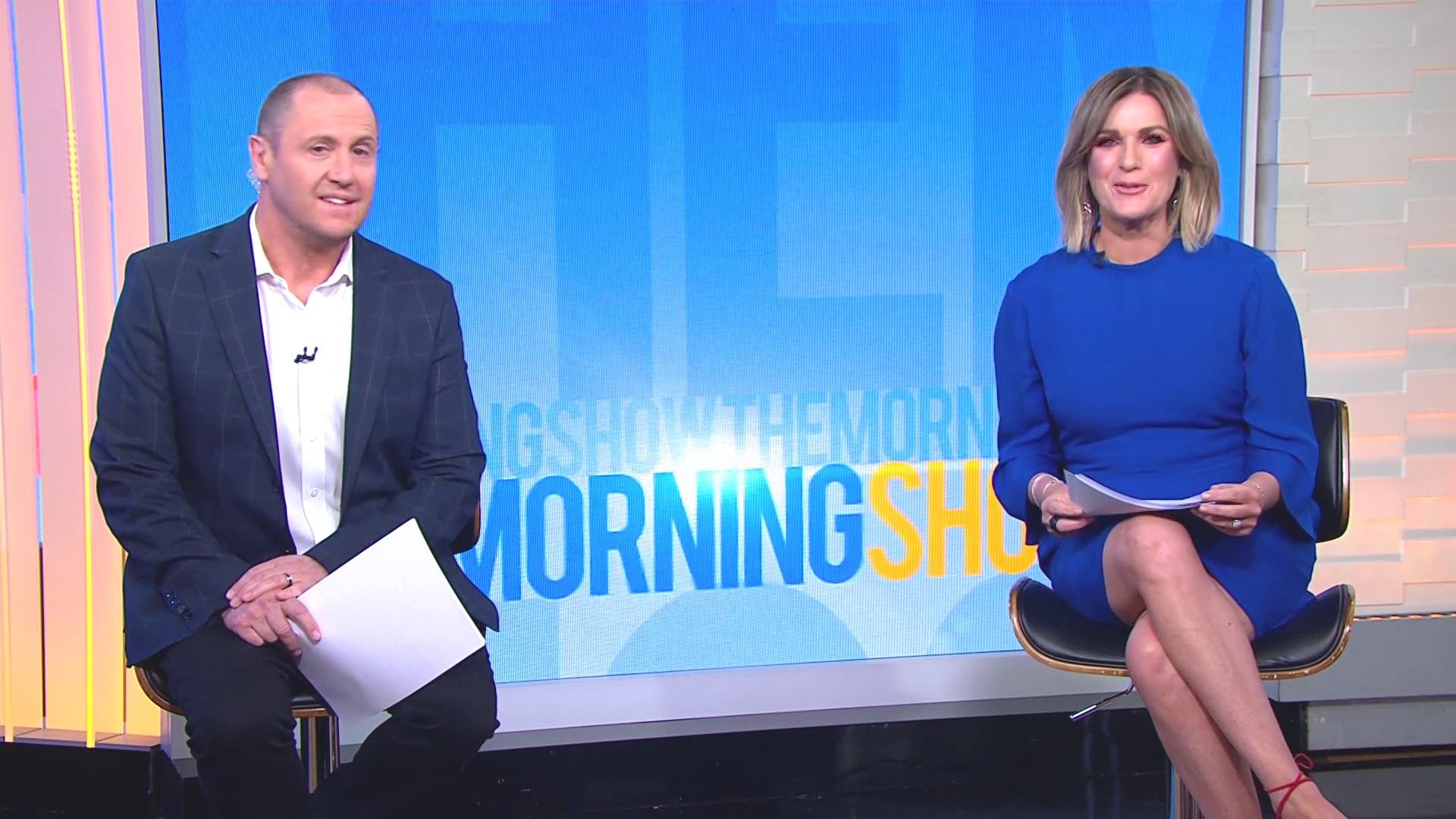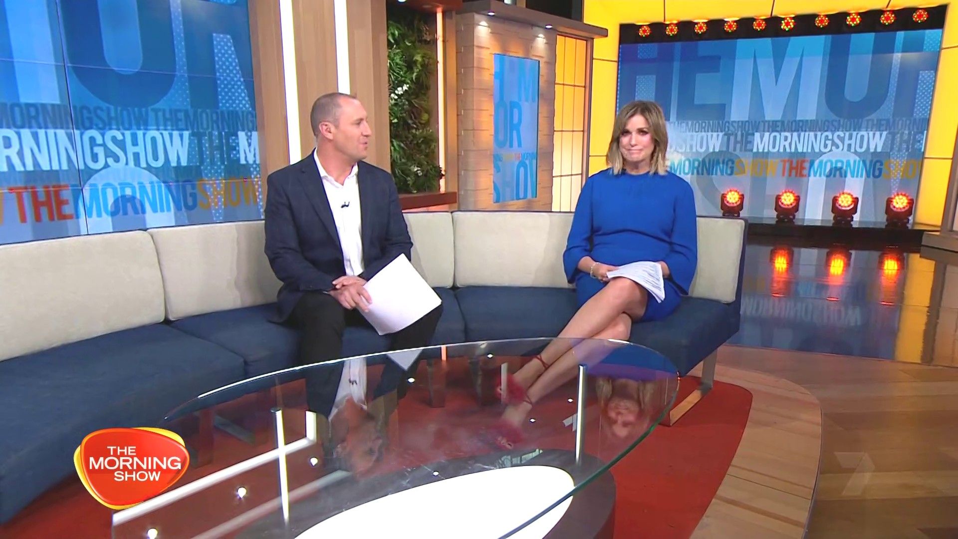 Nice legs in blue skirt again today