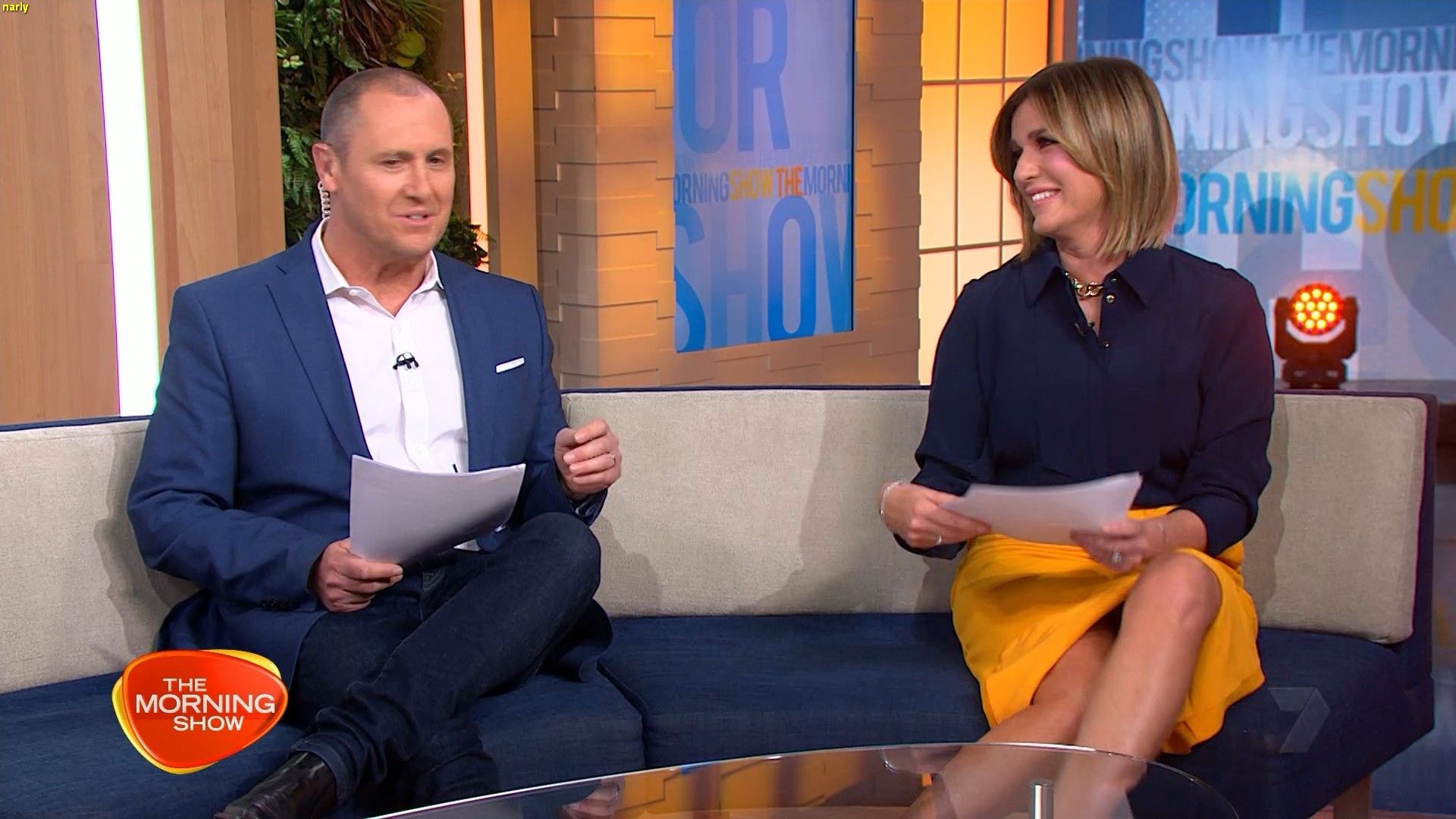 She's hiking up her dress today when sitting on the couch