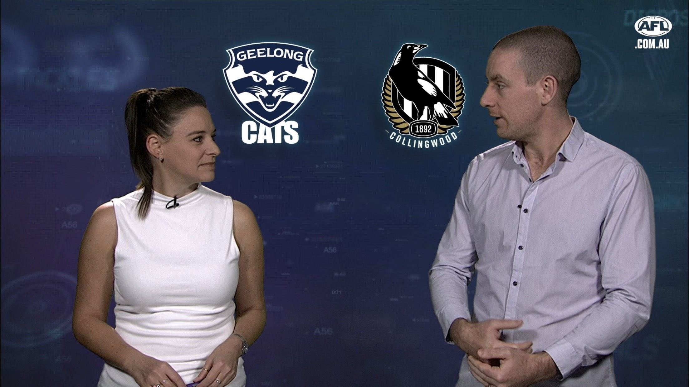 Neroli and her tremendous rack presenting for the AFL website/app.