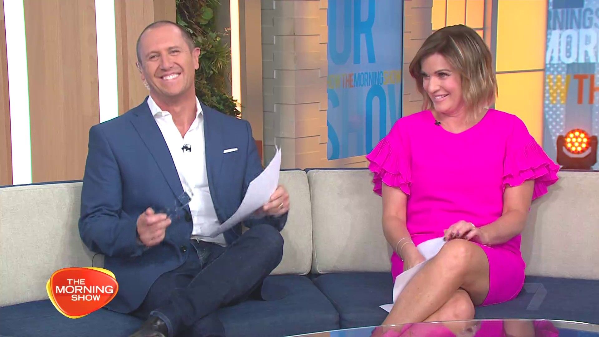Got that short green mini on today. Hope she crosses her left leg over right on the couch and especially the stool for maximum thigh viewing. :smoke: