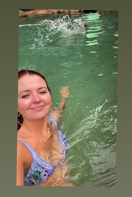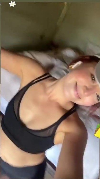Some screenshots from two of her instagram videos posted recently. I wonder if that's a black g-string she's got on, shame there's no full bum shots to find out.