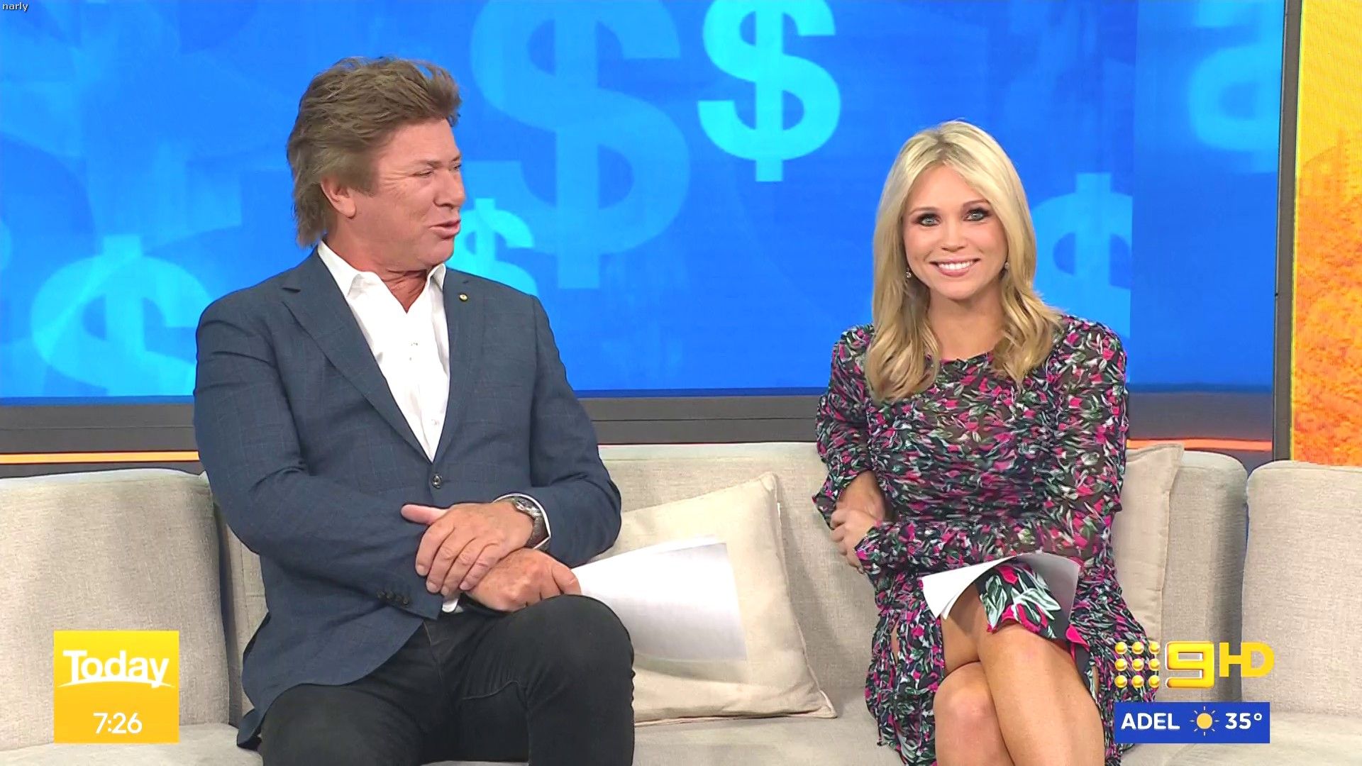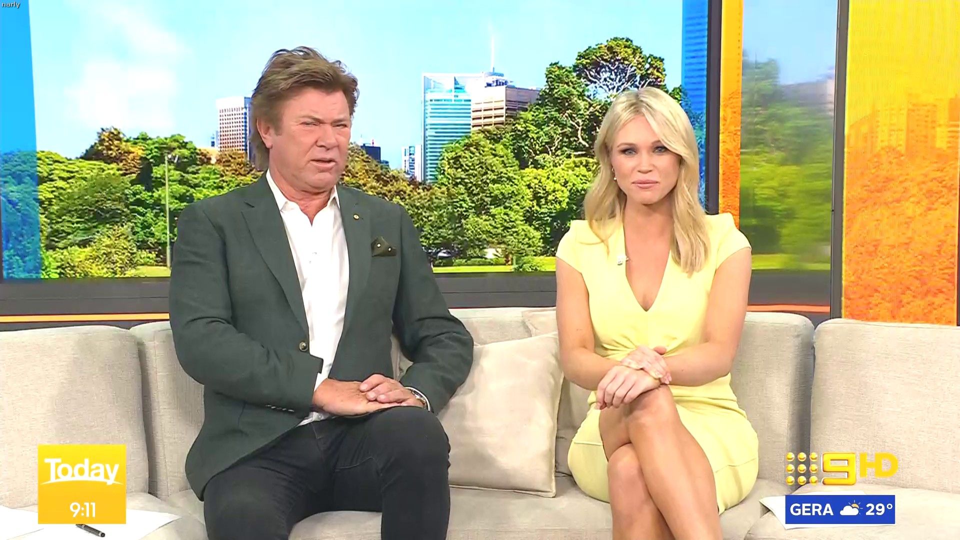 Stunning on weekend today hosting this morning. Nice split in the skirt when on the couch.
