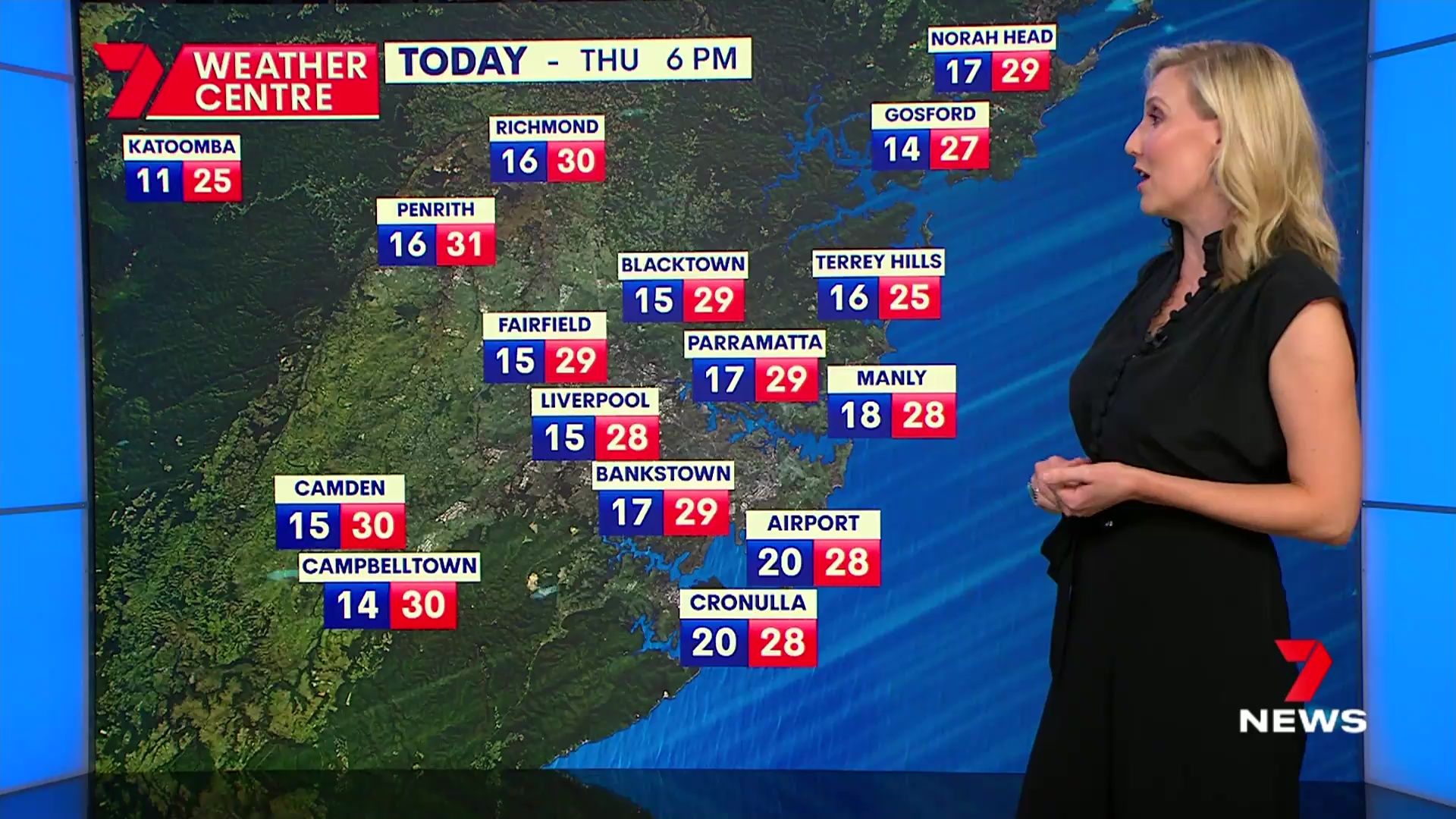 Just caught her on a weather update. Light blue shirt with the girls pushed up
