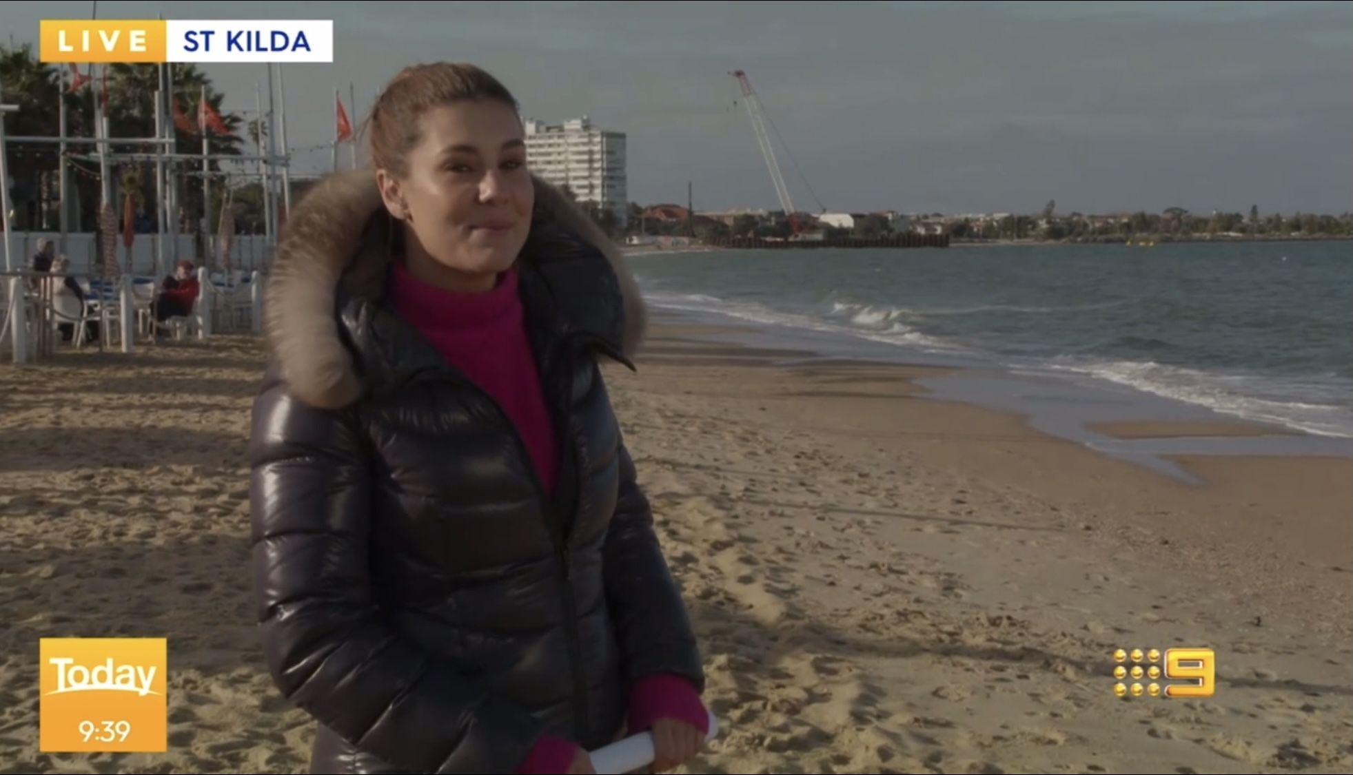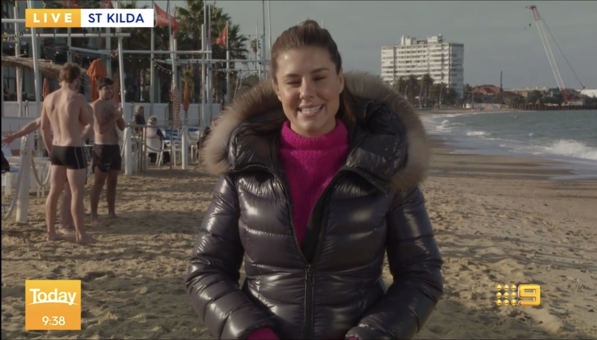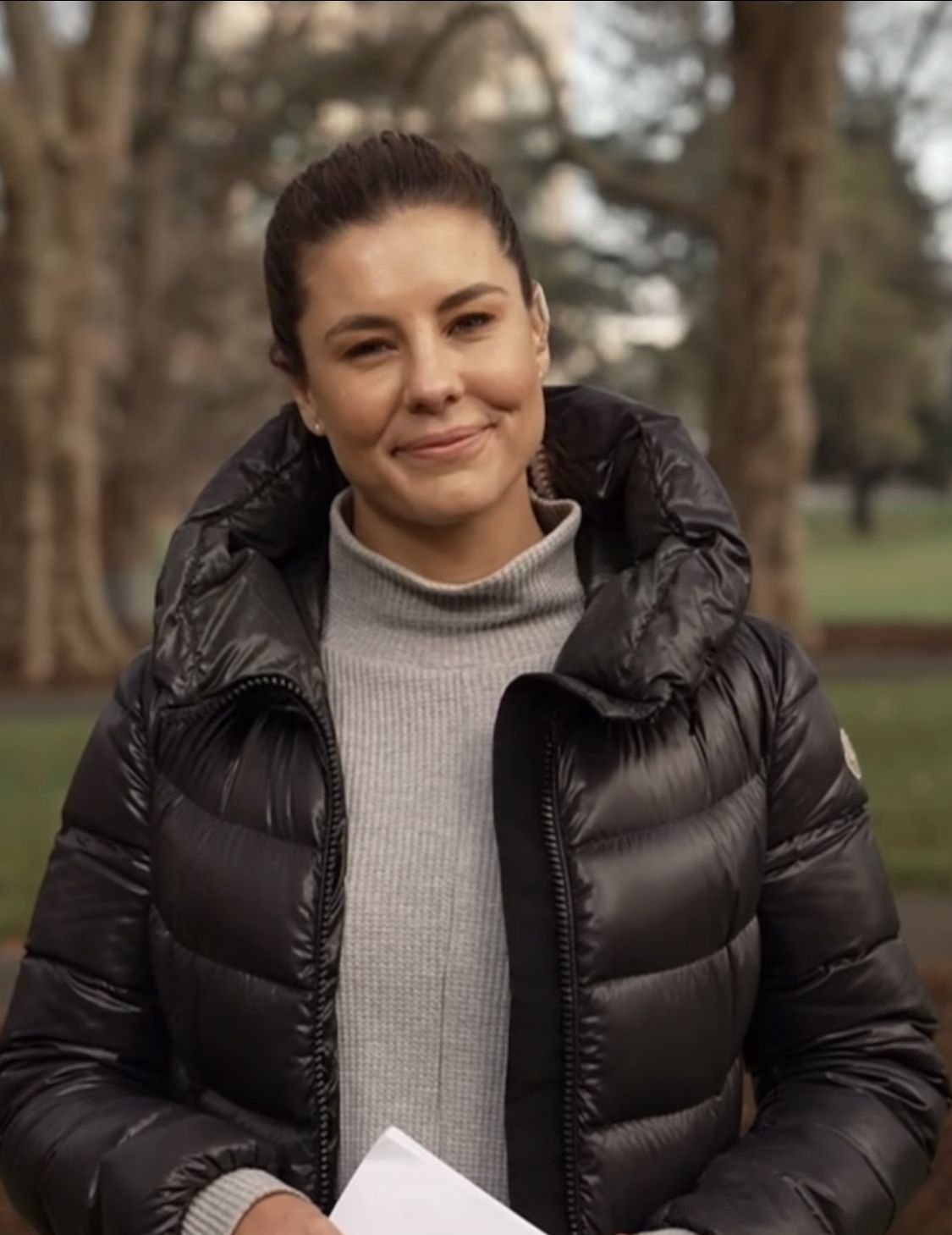 Looking adorable in the shiny puffer jacket